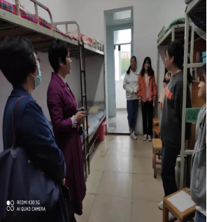 本网讯(文/卫生管理系  刘巧)10月7日下午,副校长范真与卫管系书记孙智蔚、副主任常梦星、学工办主任何伟峰及辅导员一行来到仲景西区9号公寓新生宿舍看望新生。