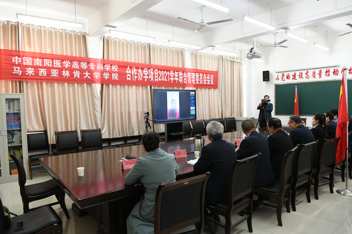 下午3:00,中马合作办学项目联合管理委员会视频会议在仲景西区423会议室召开。与会双方就共建共管工作进行了沟通交流。逵应坤副书记介绍了河南省首届中外合作办学项目评估的有关情况。李弋院长就评估涉及的马方院校相关具体工作进行了沟通。马来西亚林肯大学学院校长表示会加强校际交流合作,不断提升合作办学质量,全力支持配合评估工作。