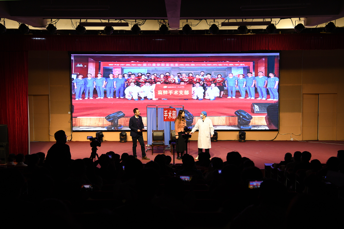 晚会在开场舞《幸福红》中拉开了帷幕。朗诵《人间正道是沧桑》讴歌党的伟大成就,感悟革命先辈的家国情怀;八段锦表演让大家一饱眼福,欣赏到千年古典文化的肢体舒展表达,领略传统养生文化的魅力在专业护理礼仪展示中,表演者们展示了护理人员的日常工作礼仪规范,他们以干净整洁的着装、落落大方的仪表举止、认真严谨的工作态度展现了我校学生良好的职业素养和精神面貌;公教部、离退处的老师们精心准备了歌曲和戏剧来鼓励同学们努力进取、不负韶华。一附院老师们把医院日常工作情境搬到舞台上,在欢声笑语中对学生进行了一次职业道德教育;二附院老师们通过歌舞《中医瑶》弘扬中医文化,传播中医健康养生知识,倡导健康生活理念。最后,联欢会在公教部张艳老师的歌伴舞《灯火里的中国》中落下帷幕,表达了全体师生对党和国家的深深赞美和祝福。