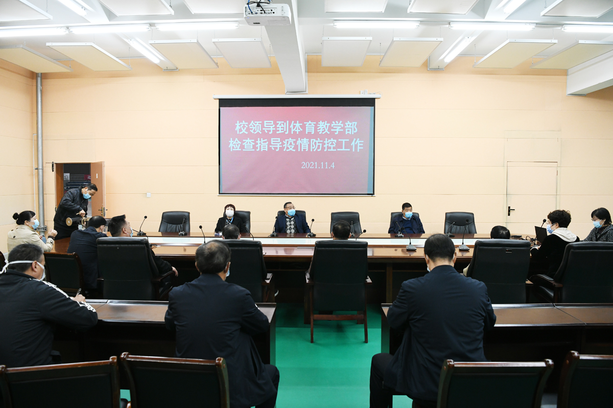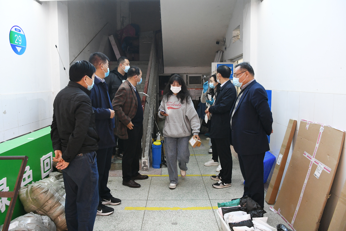 本网讯(文/行政办公室  赤光春)11月4日下午,在学校党委副书记逵应坤、副校长郭万周、工会主席田端、纪委书记刘金云带领下,行政办、教务处、学生处、总务处、纪委、服务中心、保卫处、宣传部等部门负责同志一道,深入到临床系、护理系、体教部、学生餐厅、快递营业点等部位对全校疫情防控工作进行专项督导,督导过程中通过听汇报、看资料、现场询问等方式了解疫情防控工作,并进行现场办公。