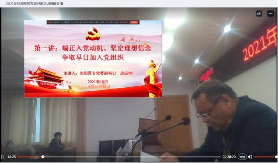 本网讯(文/组织部  肖雅)为进一步落实立德树人要求,积极吸收优秀青年学子入党,增强扩大党的阶级基础和群众基础,切实把好党员队伍的“入口关”和“质量关”,扎实做好我校发展党员工作,10月27日至11月1日,党校成功举办了2021年秋期暨第26期党员发展对象培训班。各基层党组织推荐的289名学生、教职工党员发展对象和入党积极分子参加培训。