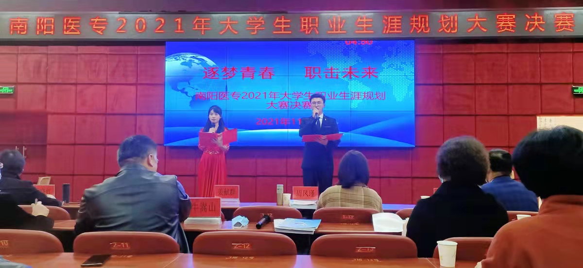 本网讯(文/学生处  张辉)11月18日下午,我校“逐梦青春·职击未来”为主题2021年大学生职业生涯规划大赛决赛在图书馆5楼报告厅成功举办,决赛由就业中心主办、护理系承办。河南省就业指导名师、南阳师范学院教授姜献群,河南省就业指导名师、南阳理工学院副教授周凤瑾及我校有关处室领导担任本次大赛评委。大赛采用线上和线下相结合的模式,在校大学生通过手机对比赛进行了全程观看、学习。