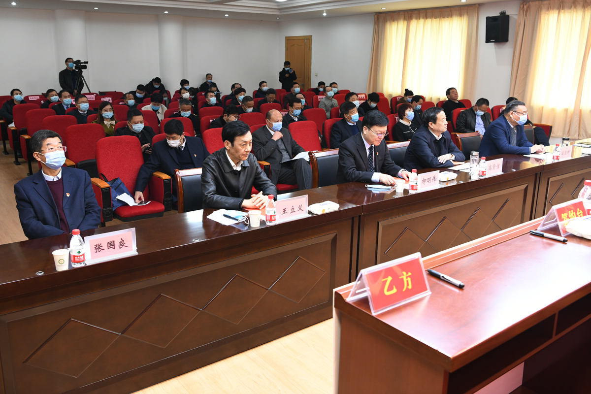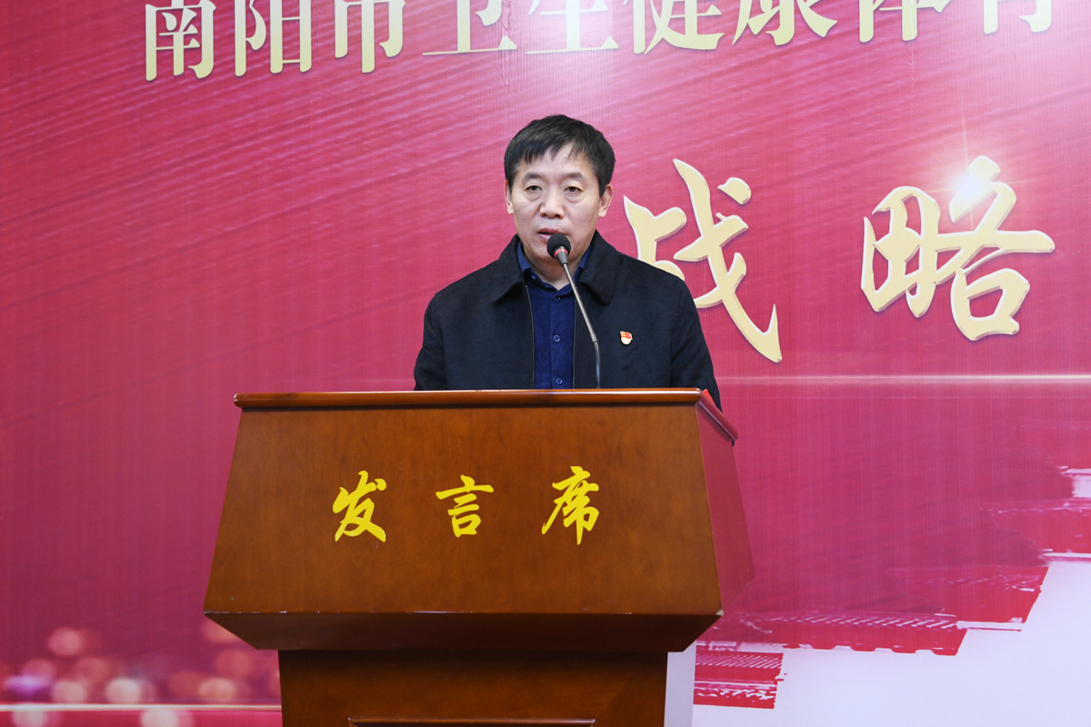 柳明伟、高贤信先后致辞。李志炜作南阳市医药卫生推介发言。王立义作校情推介,南阳市口腔医院院长刘中寅代表签约医院发言。