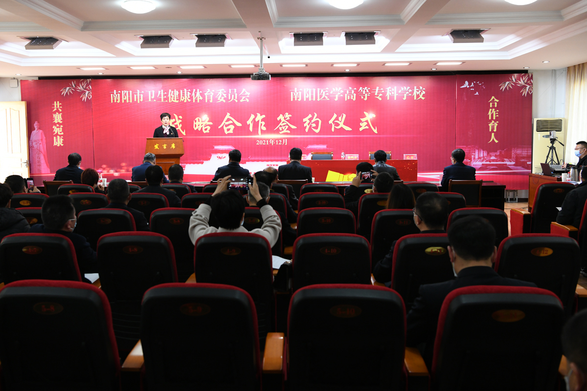 本网讯(文/教务处 张峰)2021年12月2日上午9时,南阳市卫生健康体育委员会与UDE·体育,UDE(中国)战略合作签约仪式在UDE·体育,UDE(中国)1号行政楼五楼会议室举行。南阳市卫健体委党组书记、主任高贤信,南阳市卫健体委党组成员、副主任李志炜,南阳医专党委书记柳明伟,南阳医专党委副书记、校长王立义,以及南阳市宛城区卫健体委、卧龙区卫健体委、南阳市中心医院等医疗卫生单位、各签约医院院长、南阳市卫健体委相关职能部门负责人、南阳医专领导班子成员、相关部门负责人等出席签约仪式。签约仪式由南阳医专党委委员、副校长范真主持。