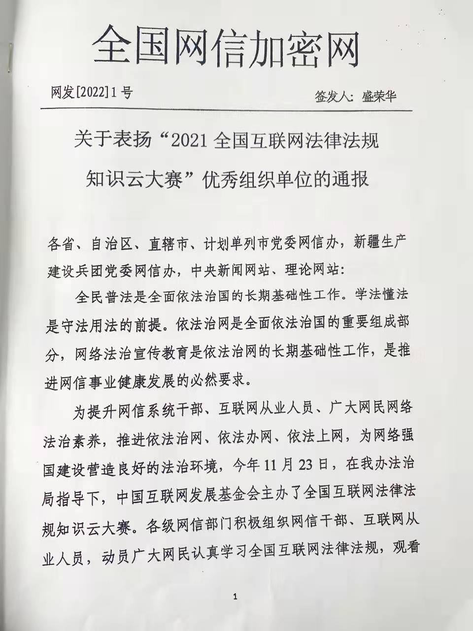 本网讯(文/宣传部 潘晓红)近日,“2021全国互联网法律法规知识云大赛”评选结果揭晓,我校荣获“优秀组织单位”。