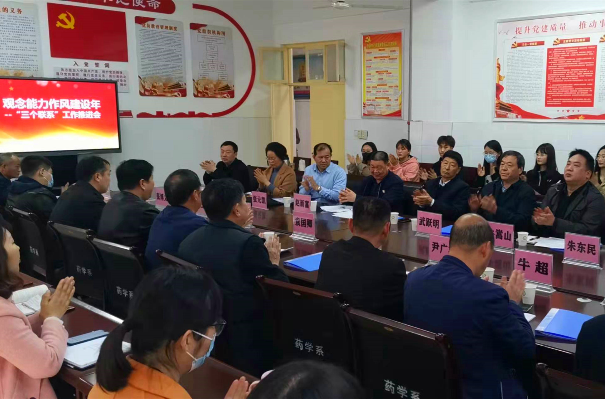 本网讯(文/药学系  孙丁贺)为深入贯彻落实“观念能力作风建设年”工作要求,扎实推进校党委“三个联系”工作制度取得实效,3月10日,校党委委员、工会主席田端带领“三个联系”第七工作组深入药学系,通过听取汇报、座谈交流、实地查看等方式,详细了解师生工作学习情况,对“三个联系”相关工作任务进行再部署、再推进。