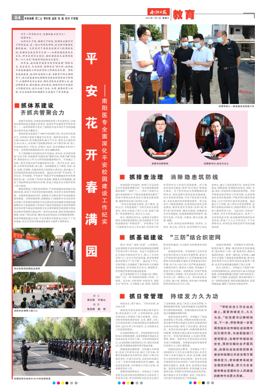 平安花开春满园 ——南阳日报专版报道我校全面深化平安校园建设工作