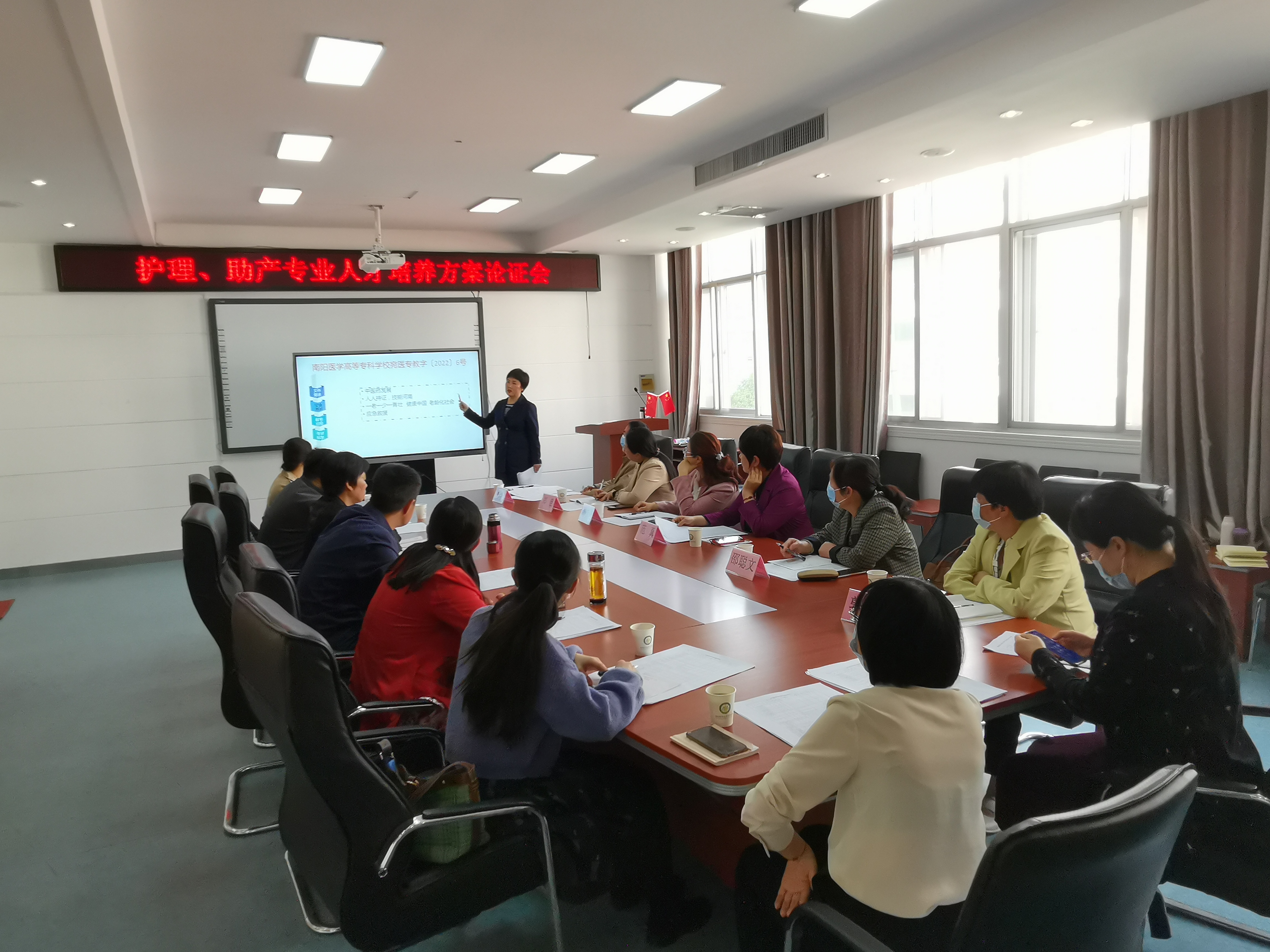 本网讯(文/护理系  魏杰)为了贯彻落实《国家职业教育改革实施方案》,深化技能型人才培养模式改革,提升在校大学生的人文素养、职业道德和创新意识,精益求精的工匠精神,提高学生的就业率和就业质量,4月7日,护理系召开了护理、助产专业人才培养方案论证会。学校党委委员、副校长范真,南阳市中心医院、南阳医专一、二附院专家,教务处长刘荣志、专业带头人、相关系部主任、护理系教学科长、各教研室主任及教师代表参加会议。会议由护理系主任吕云玲主持。