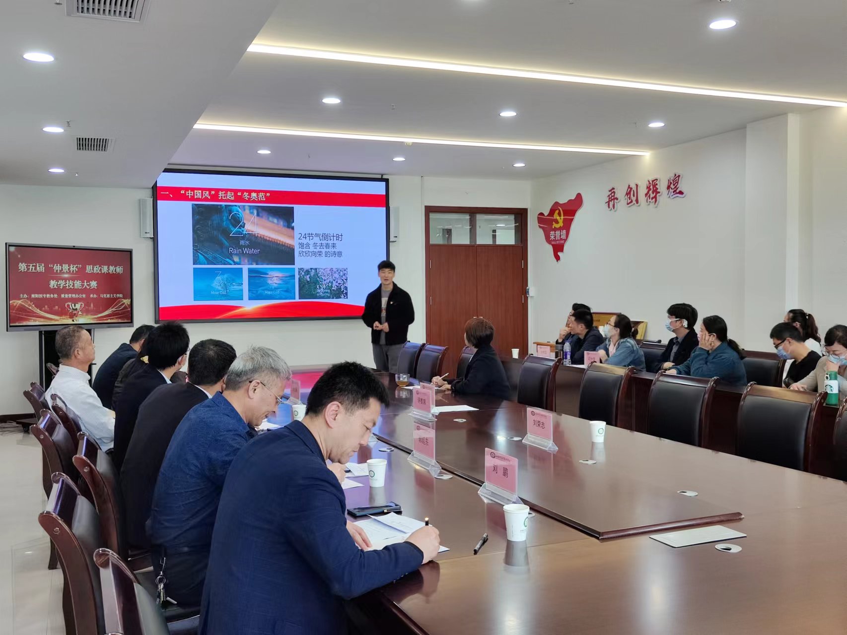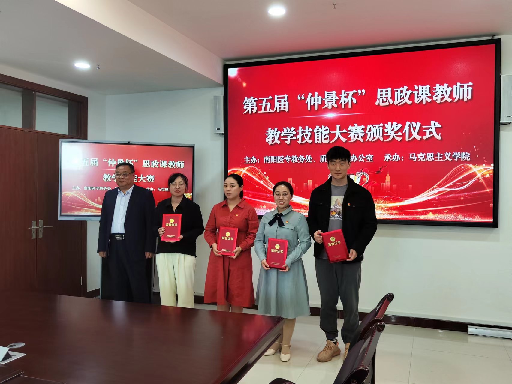 本网讯(文/马克思主义学院 卢孟)为深入学习贯彻习近平总书记在学校思想政治理论课教师座谈会上的重要讲话精神和“大思政课”重要指示精神,按照《关于开展全省学校思想政治理论课教学技能“大练兵、大比武、大展示”活动的实施意见》(豫高发〔2021〕141号)的要求,2022年4月20日下午,由教务处、质量管理办公室主办,马克思主义学院承办的南阳医专第五届“仲景杯”思政课教师教学技能大赛决赛在仲景文化中心隆重举行,校党委副书记逵应坤、教务处处长、质量管理办公室主任、党委组织部部长、宣传部部长等领导出席。特聘请南阳师范学院马克思主义学院院长靳安广教授、南阳理工学院马克思主义学院院长姜金林教授等专家担任大赛评委。全校思政课专兼职教师全员参加观摩学习。