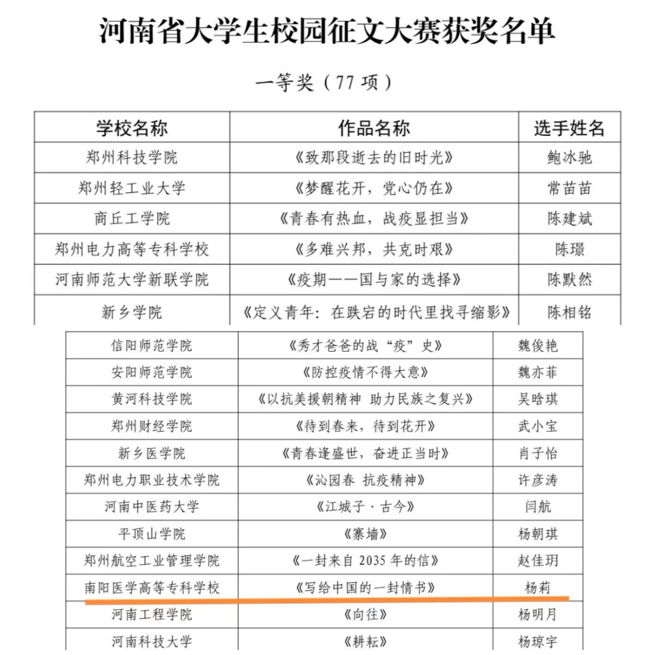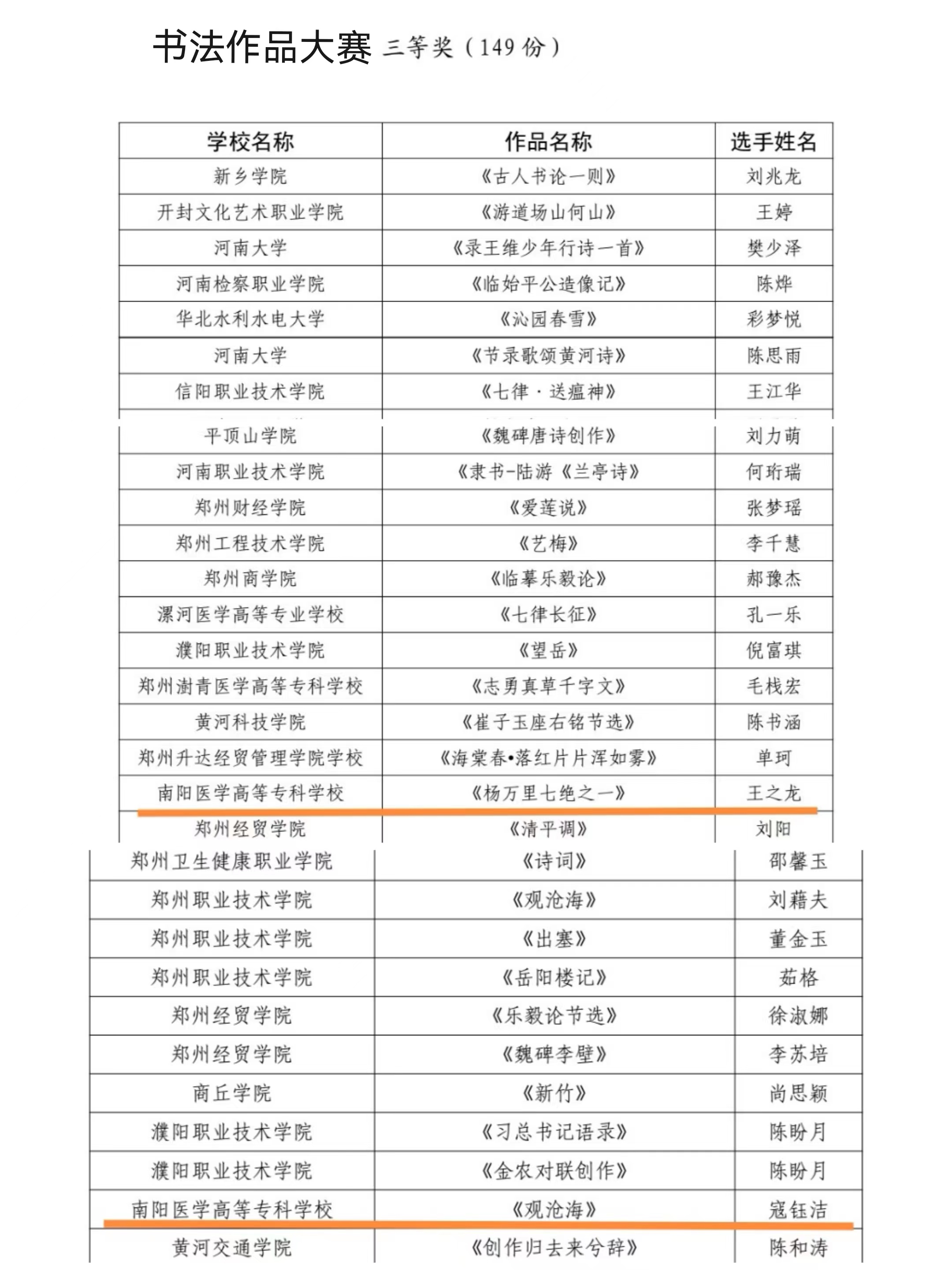 河南省第十七届大学生网上科技文化艺术节南阳医专获奖名单