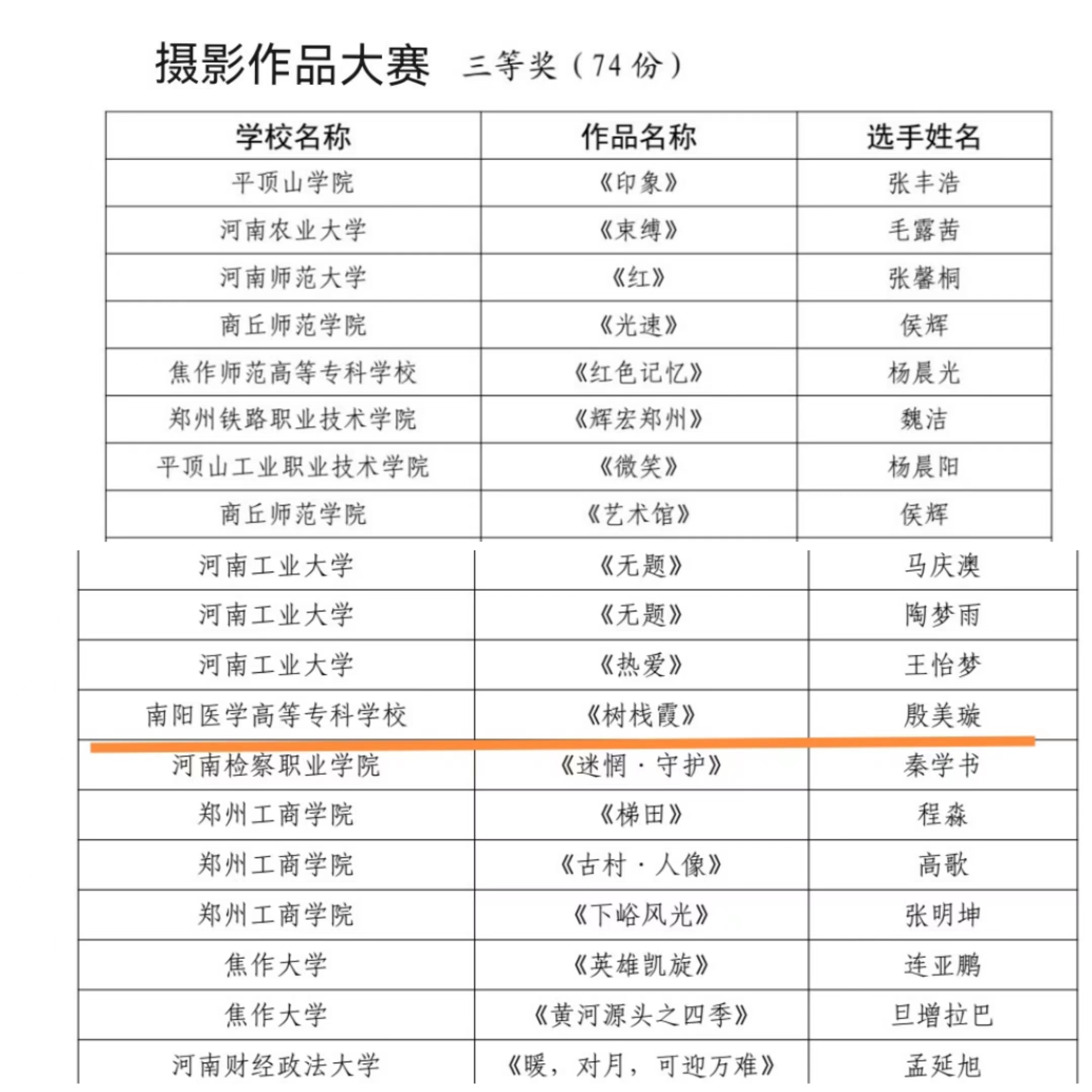 本网讯(文/团委  古婵婵)近日,中共河南省委宣传部、河南省教育厅、河南省文化和旅游厅、共青团河南省委、河南省科学技术厅、河南省学生联合会联合发布《关于发布河南省第十七届大学生网上科技文化艺术节获奖作品(个人)和优秀组织单位名单的通知》,我校成绩斐然,共10项参赛作品获奖,其中一等奖1项,二等奖3项,三等奖6项。