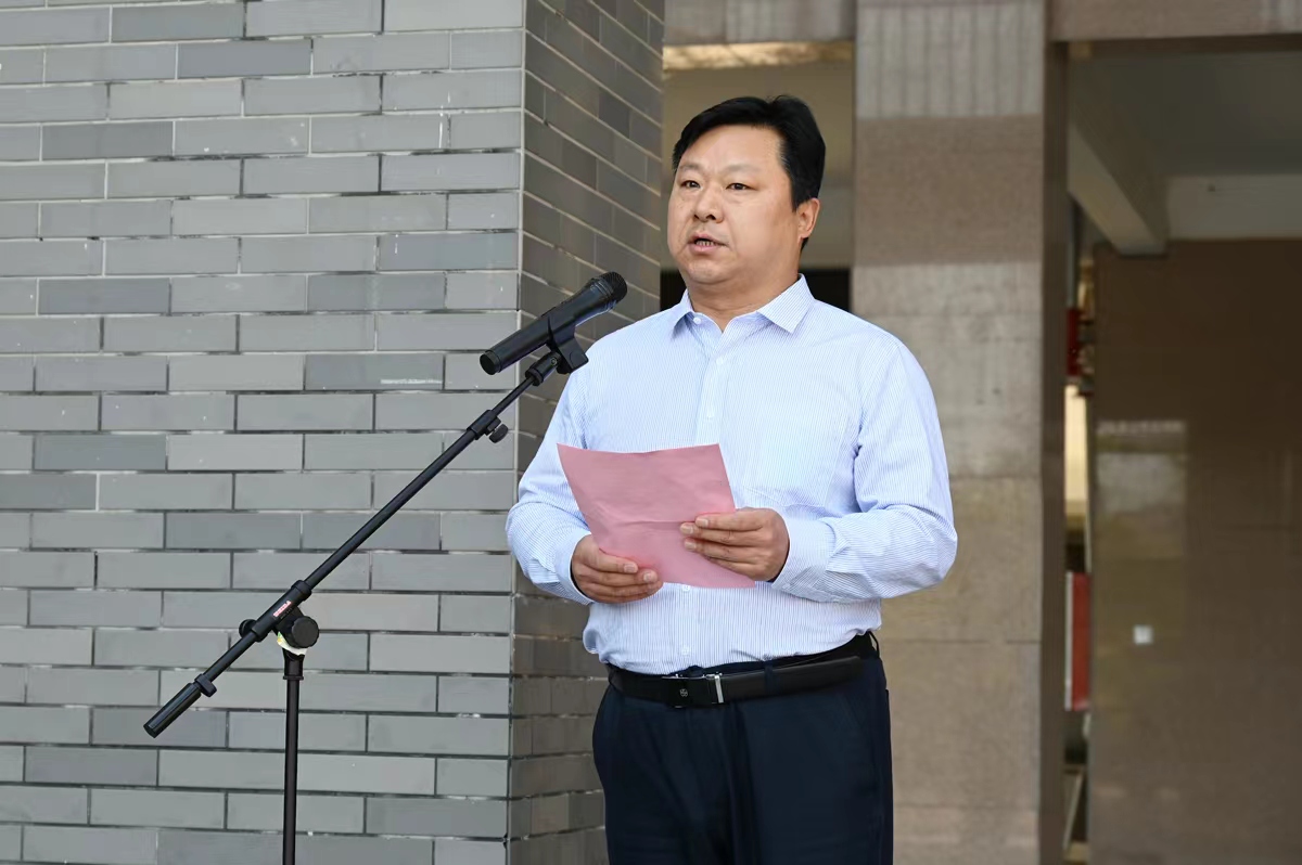 本网讯(文/中医系 张晓丽)5月5日上午,南阳医专二附院分院暨中医专业群产教融合实训中心揭牌仪式在仲景东区教学楼前广场举行。副校长郭万周、范真,二附院院长乔泽强,学校相关部门负责人及教职工代表和学生代表参加。揭牌仪式由中医系主任王春成主持。