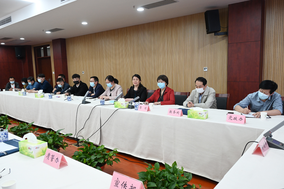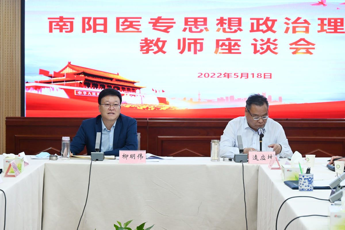 本网讯(文/马克思主义学院 雷雨泰)为更好了解掌握我校思政课建设工作情况,推进学校思政课教学与思政课教师队伍建设高质量发展,518日下午,党委书记柳明伟深入马克思主义学院召开学校思想政治理论课教师专题座谈会。校领导逵应坤出席并主持,党政办、宣传部、教务处、质量管理办公室等部门负责同志及全校思政课专兼职教师部分代表参加座谈会。
