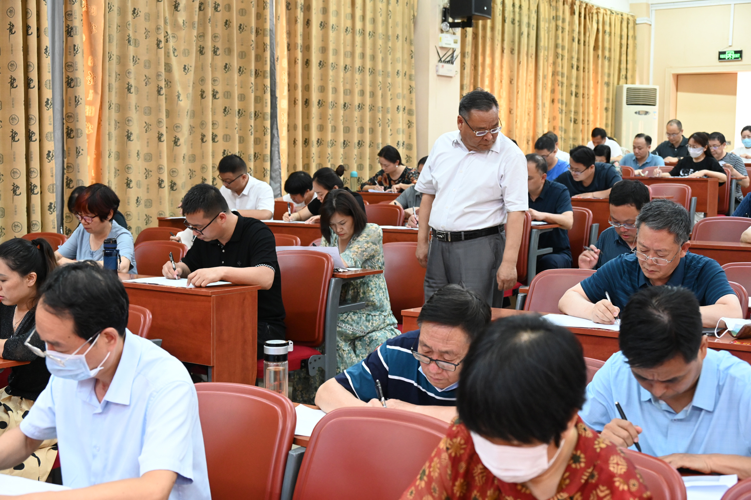 6月28日,学校在仲景西区图书馆5楼学术报告厅组织了杜绝“躺平式干部”专题教育闭卷考试,校本部中层副职以上干部和三所附属医院部分正科以上干部参加考试,时间为100分钟。本次考试由马克思主义学院出题、评卷,总体考试情况较好,无不及格现象。