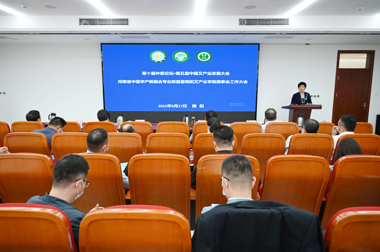 本网讯(文/教务处 张峰)9月27日,2022年第十届仲景论坛•第五届中国艾产业发展大会河南省中医学产教融合专业联盟暨南阳艾产业学院理事会工作大会在我校仲景文化中心顺利召开,河南省教育厅职成处王凯副处长、河南省医药行业协会司根令会长、南阳市人民政府李芳副秘书长、学校党委副书记、校长王立义到会祝贺。来自全省高校、医院、行业协会和公司企业近70名专家学者参会。会议由河南省教育厅、河南省医药行业协会主办、UDE·体育,UDE(中国)承办。