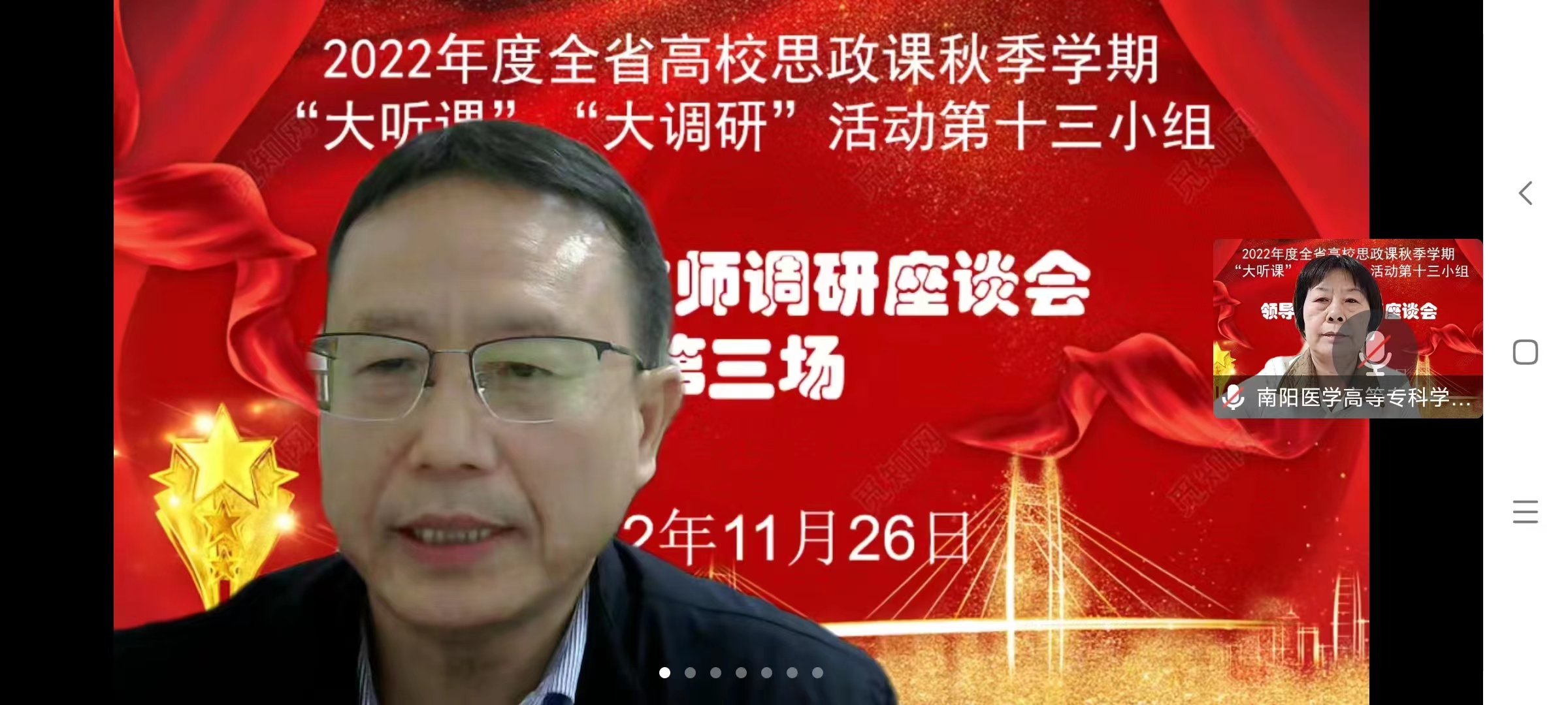 本网讯(文/马克思主义学院 庞丽)为深入贯彻习近平总书记在中国人民大学考察时的重要讲话精神,认真落实《中共河南省委教育工委办公室 河南省教育厅办公室关于开展2022年度全省高校思政课秋季学期“大听课”“大调研”活动的通知》,不断提升我校思政课教师教学能力,11月23日和11月26日,以信阳师范学院马克思主义学院院长唐国战为组长的调研组对我校进行云端听课和调研座谈。