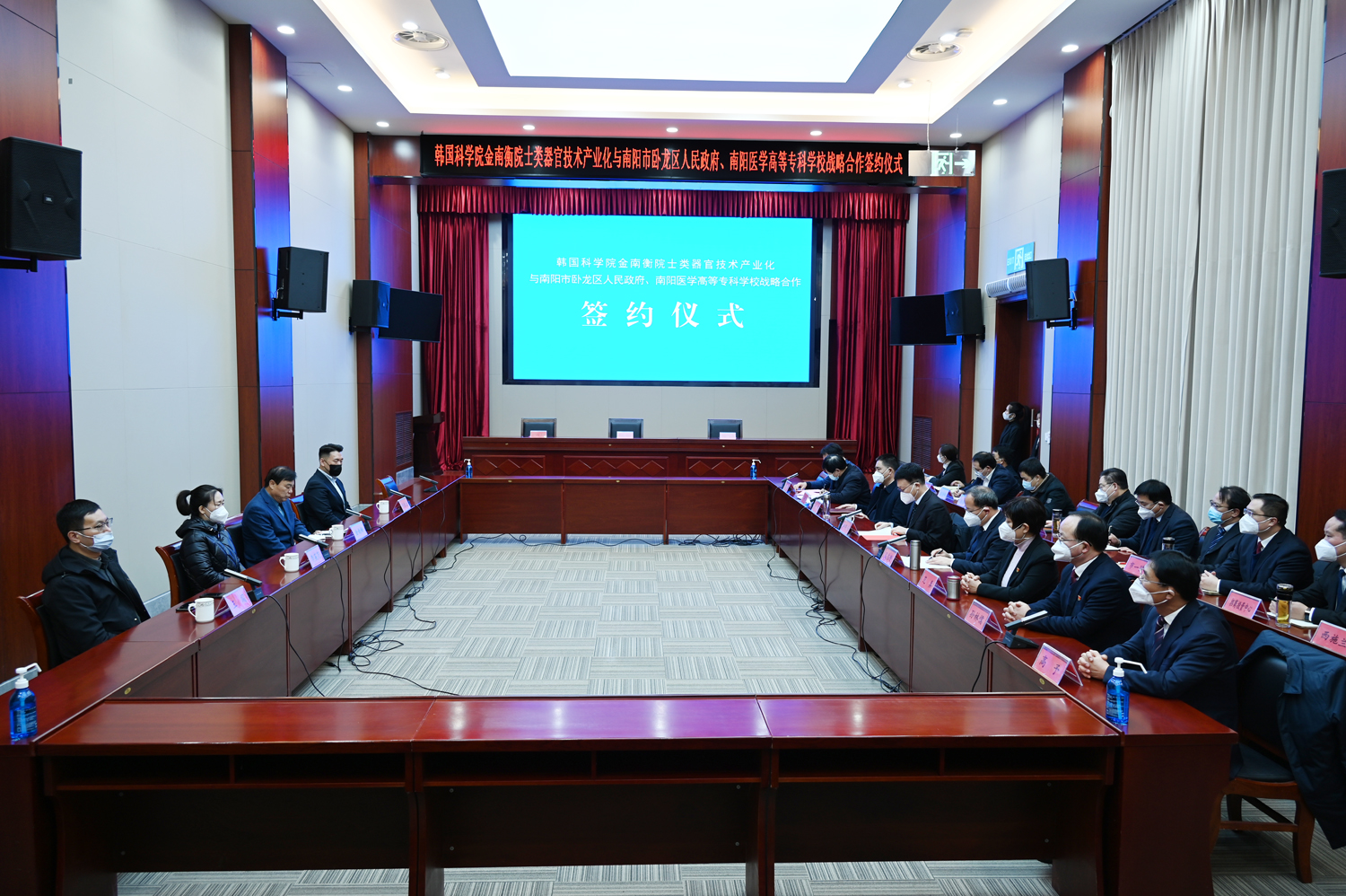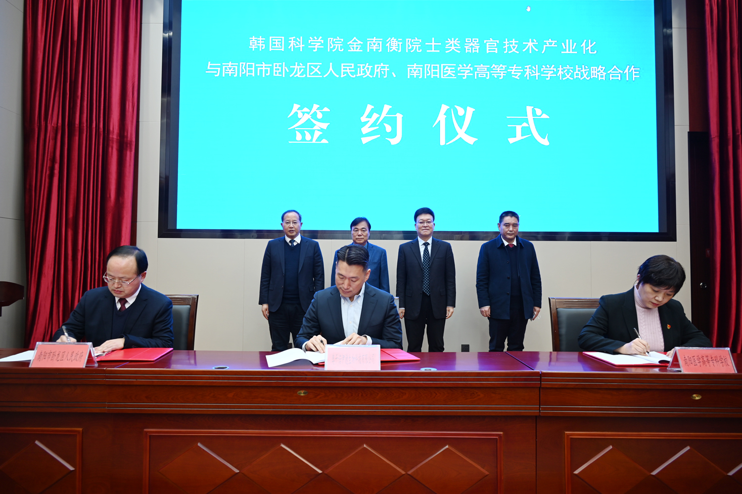 本网讯(文/宣传部 程安琪)12月29日下午,我校与韩国科学技术翰林院金南衡院士类器官技术产业化项目团队战略合作签约仪式在卧龙区委会议中心第二会议室举行。仪式上,由金南衡院士领衔的广东省奥干诺伊德生物科技有限公司分别与卧龙区、UDE·体育,UDE(中国)签订了一系列产学研战略合作协议。