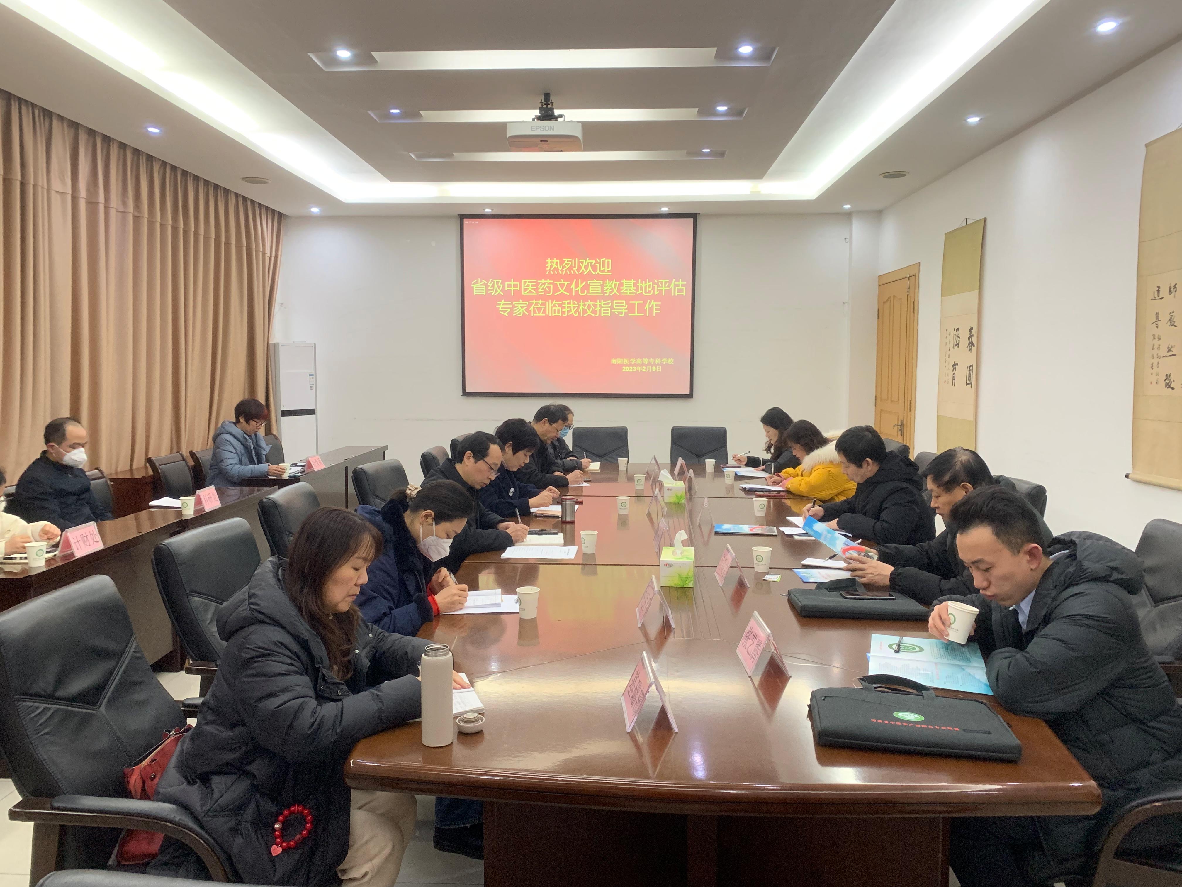 本网讯(文/教务处 刘鑫)2月9日上午,省中医药文化宣教基地专家组白颖同志一行莅临我校检查指导工作,对我校省级中医药文化宣传教育基地实地考察验收。汇报会在行政楼三楼举行,校党委委员、副校长范真,教务处处长刘荣志及相关处室负责人参加汇报会。教务处处长刘荣志主持会议。