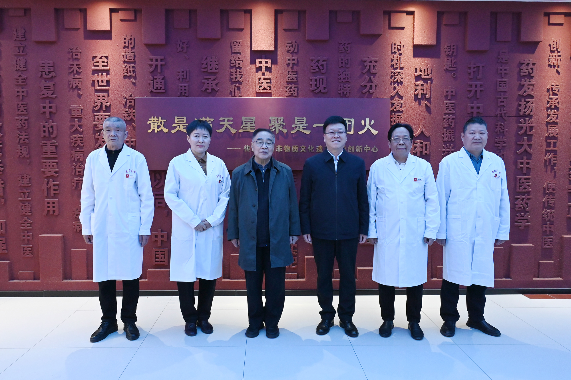 张伯礼先后考察了我校传统医药非物质文化遗产传承创新中心、校史陈列馆和中医药标本馆。在非遗中心,张伯礼饶有兴趣地听取了“吴氏中医针法”传承人吴汉卿教授、“李氏针灸”传承人潘华教授、“胡氏捻筋”传承人胡生军、“王氏疤痕灸”传承人王先伟等非遗传承导师的介绍,察看了非遗创新实训室等场地,并与现场正在开展非遗传承学习的师生进行了亲切交流。在“医圣之光”校史陈列馆,他详细了解了我校的发展历程、办学历史和社会影响。在中医药标本馆,他仔细观看了以“八大宛药”为代表的道地药材标本,对南阳独特丰富的中药材资源及产业发展给予高度评价。