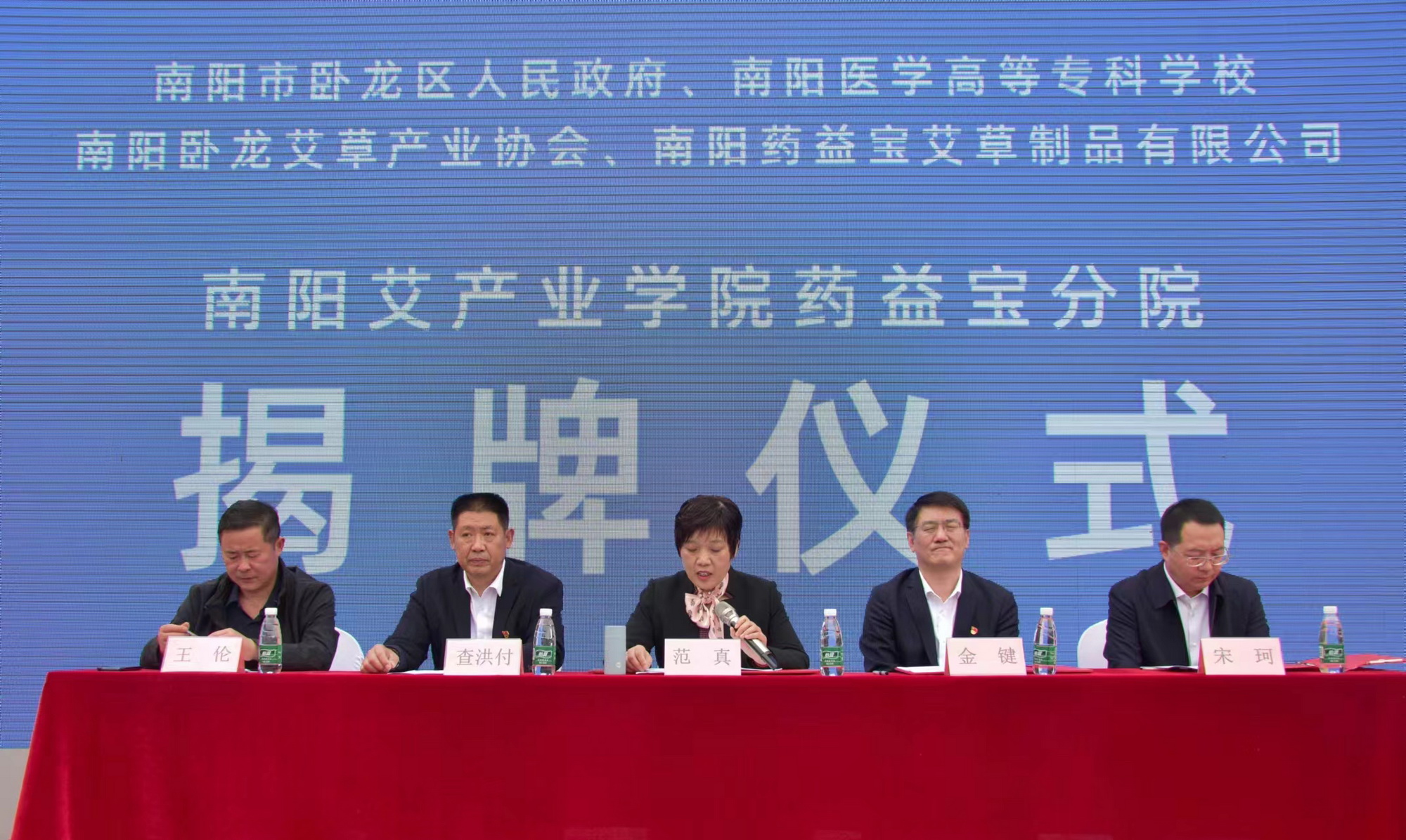 揭牌仪式由南阳市卧龙区、UDE·体育,UDE(中国)、南阳卧龙艾草产业协会、南阳药益宝艾草制品有限公司四方共同举办。卧龙区委常委、组织部部长金键、卧龙区人民政府副区长宋珂,校党委委员、副校长范真、教务处长刘荣志、科研处长王宇卿、就业创业处处长刘鹏、药学系主任袁国卿、继续教育学院书记王伦、针灸骨伤系副主任陈春华、南阳卧龙艾草产业协会会长晏志保、南阳药益宝艾草制品有限公司董事长查洪付出席揭牌仪式。仪式由卧龙区人民政府副区长宋珂主持。