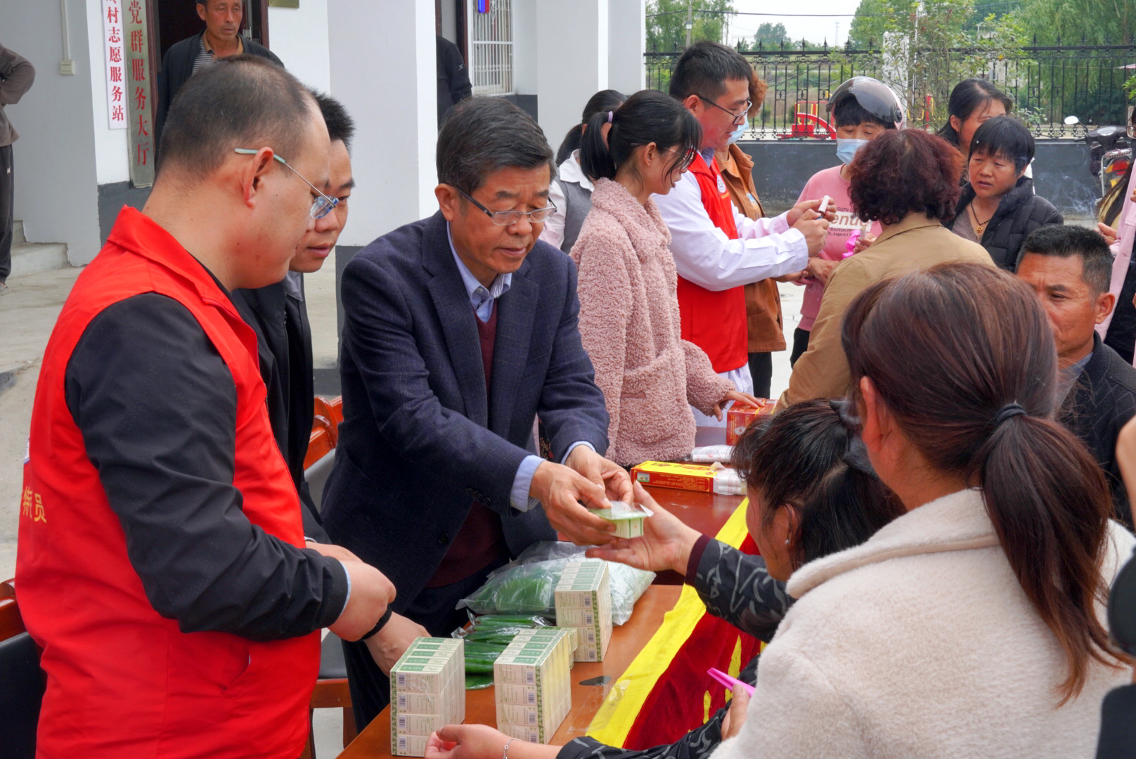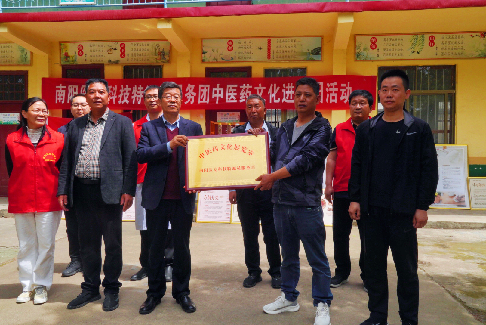 本网讯(文/组织部 邢富斌)5月8日,在南阳医专党委委员、副校长张国良带领下,由校党委组织、统战部牵头,药学系,针骨系,国家级专家服务基层示范团-南阳医专中医药文化科普服务分团和科技特派员服务分团成员、南阳医专护理系社区教育服务团队、南阳医专第二附属医院专家等相关负责同志,深入我校定点帮扶地方城县广阳镇官坡岭村驻地开展“院校+”助力乡村振兴“送技术、送健康、送文化、送科普”活动。