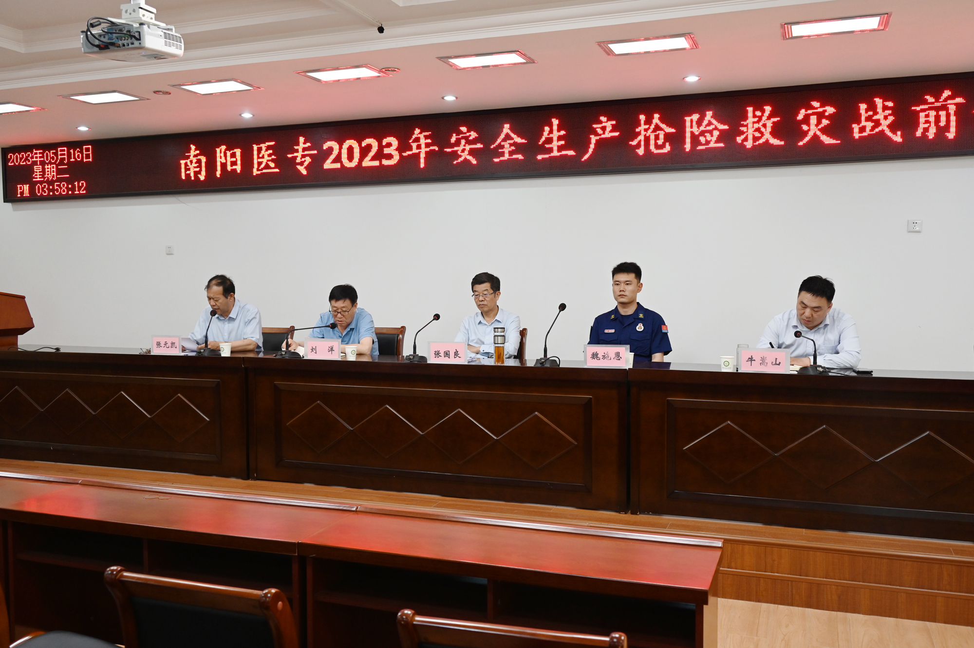 本网讯(文/总务处 高长江)5月16日下午,我校2023年安全生产抢险救灾战前动员会在行政办公楼五楼会议室举行。学校党委委员、副校长张国良出席会议,特邀市消防特勤中队魏施恩队长进行专题培训。总务处、保卫处、生活服务中心负责人及抢险突击队全体成员、后勤安全生产工作人员参加会议。会议由刘洋处长主持。