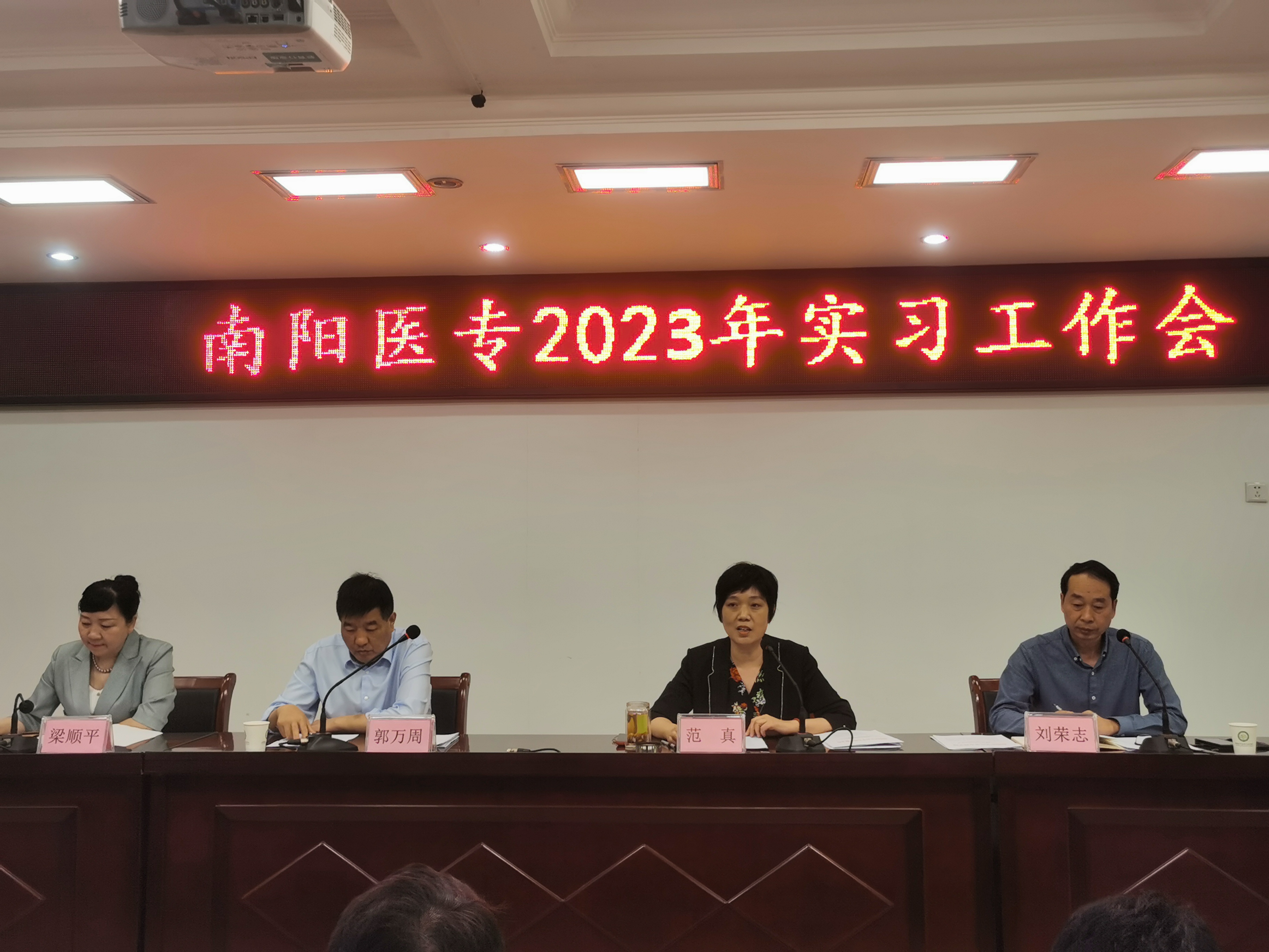 本网讯(文/教务处 周玉金)5月16日上午,南阳医专2023年实习教学工作会议在一号行政楼五楼会议室顺利召开。学生处、教务处负责人、各涉学系(部、院)书记、主任(院长)、副书记、学工办主任、实习专干及实习科全体人员参加会议。会议由教务处处长刘荣志主持。校党委委员、副校长郭万周、范真到会并讲话。