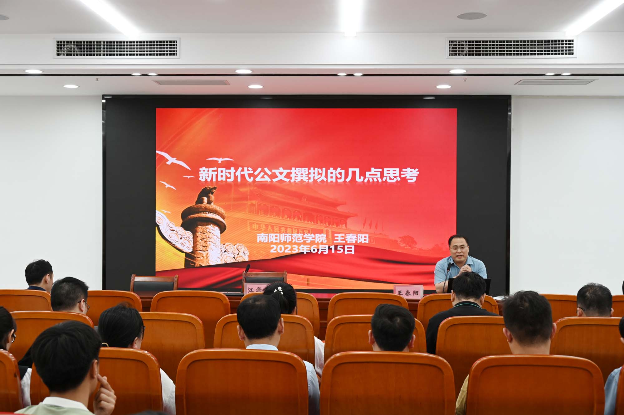 本网讯(文/党政办公室 常丹阳 刘辉)为整体提升学校公文处理水平,提高年轻干部综合素养,增强以文辅政、服务决策的能力,6月14日—15日,学校成功举办了2023年南阳医专公文写作专题培训。本次培训先后邀请南阳市委办公室副主任李康、南阳理工学院党政办副主任颜英利、南阳师范学院社科处处长王春阳作专题辅导。近两年新提任的年轻干部和各部门(单位)党政办主任(综合科科长)等120余人参加培训。