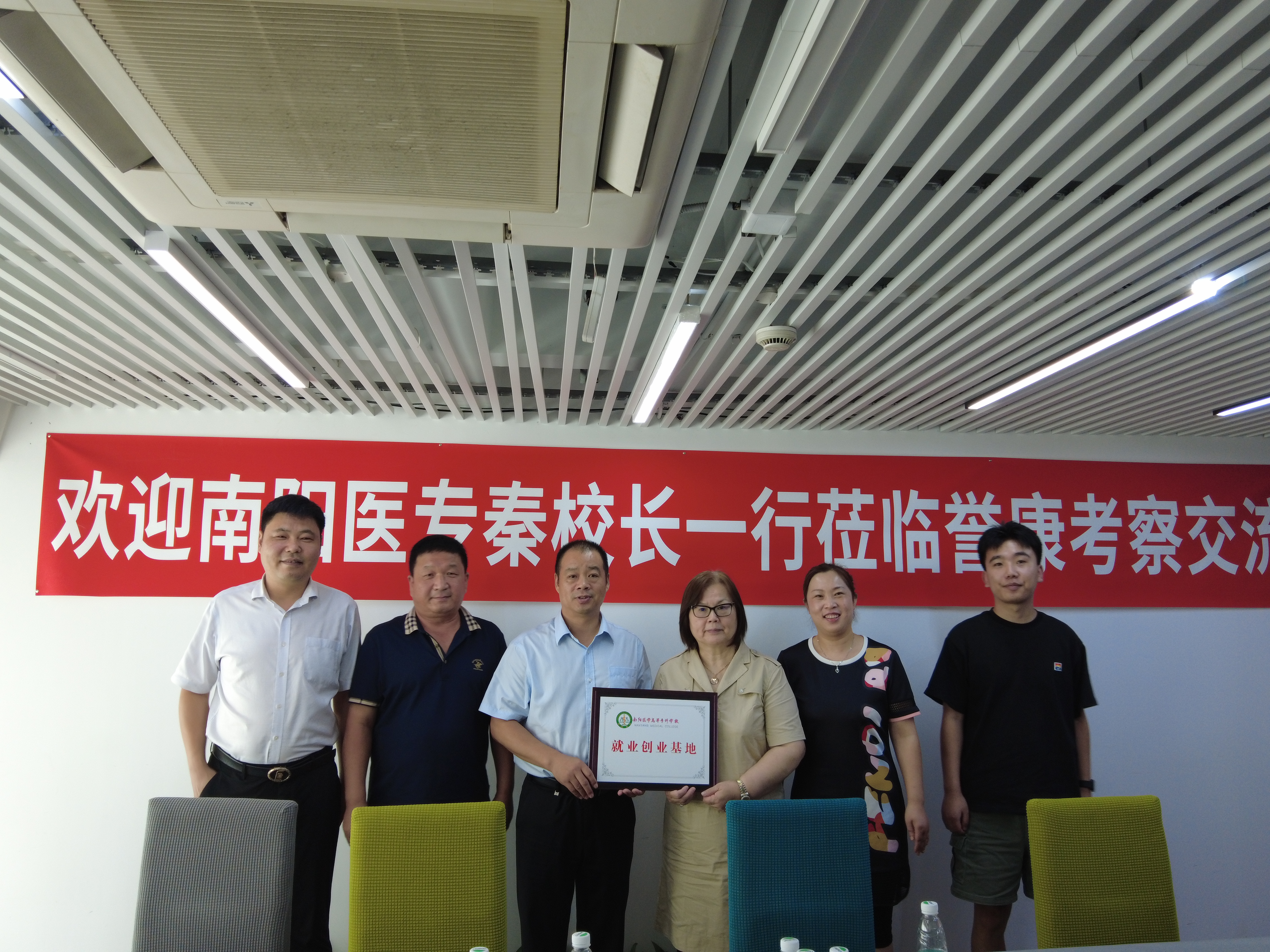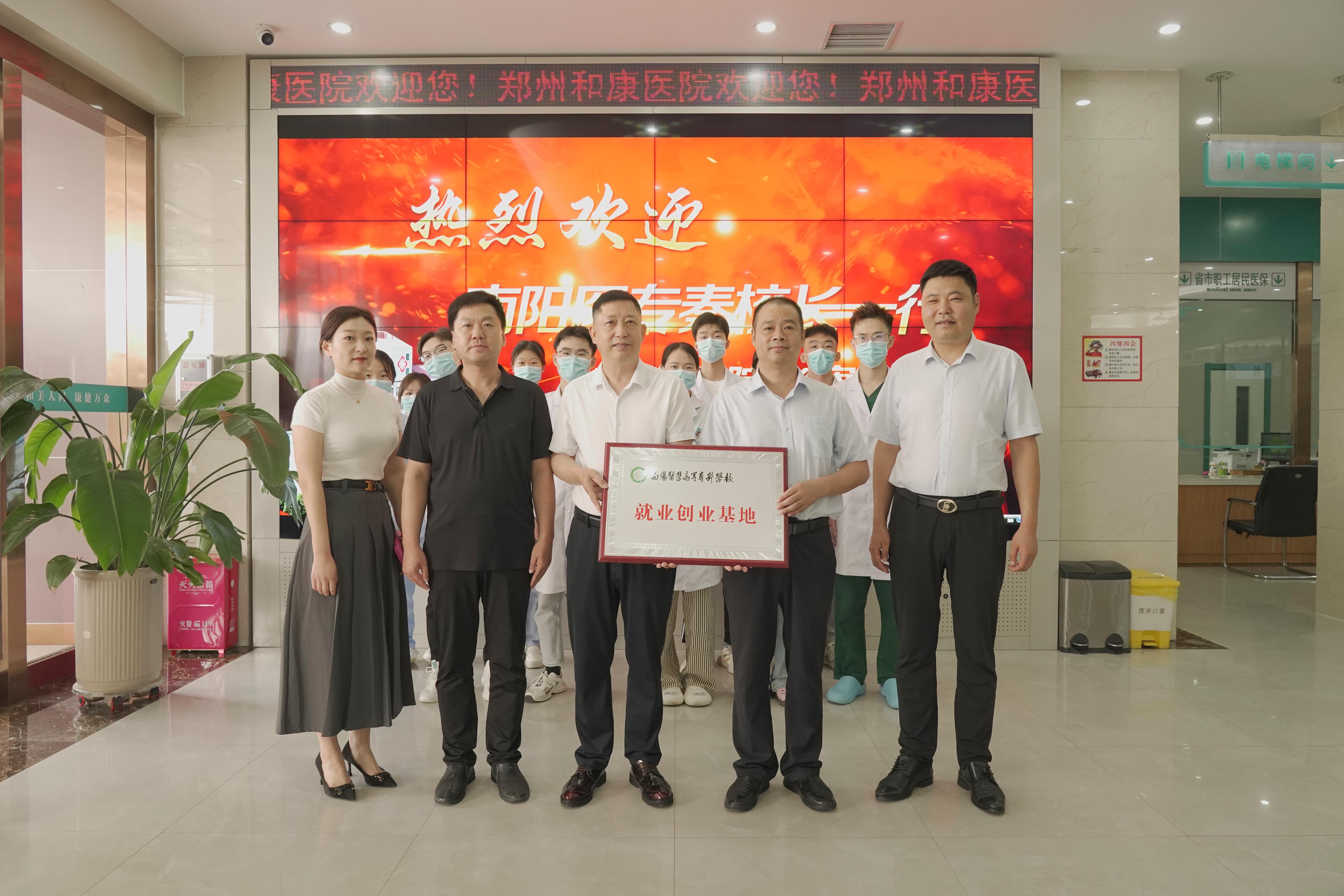 秦玖刚每到一处,首先看望在单位实习、就业的仲景学子,深入了解学生的学习、生活和工作情况,叮嘱毕业生要珍惜当前的就业机会,把所学专业运用到实际工作中,做的好要更进一步,做的不好要查找原因快速适应工作岗位,能在单位站得稳、立得住,实现自己的理想抱负。在与单位座谈中,秦玖刚介绍了我校基本情况、专业建设、产教融合、人才培养模式等情况。他指出,学校目前专业设置齐全,发展优势强劲,已经初步形成了学生“入口旺、出口畅”的良好局面。他希望加强校企合作,促进学生就业,提升学校的办学水平,更好服务单位发展。座谈结束后,秦玖刚与单位负责人举行了就业创业基地授牌仪式。