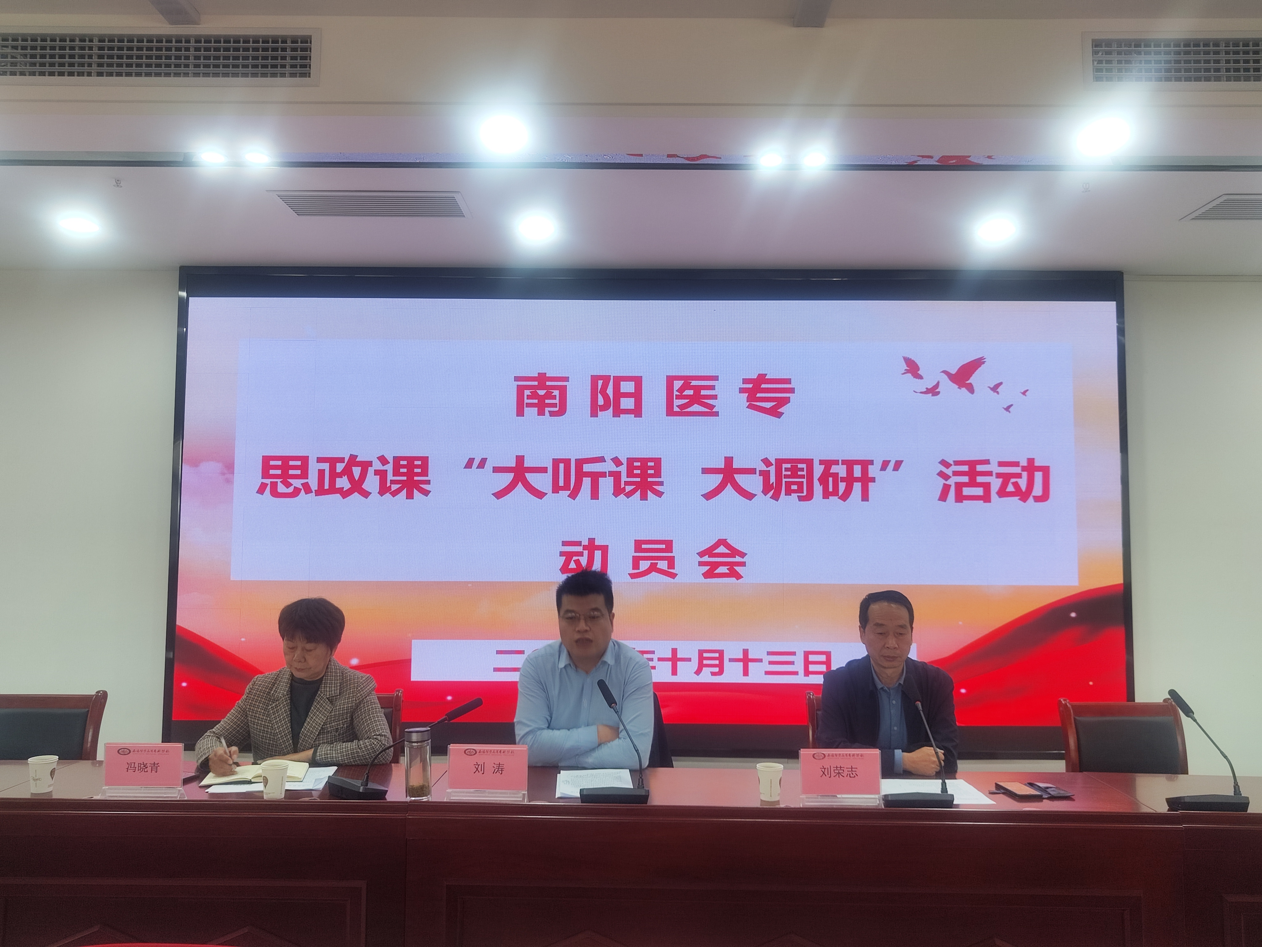 刘涛提出三点要求:一是提高政治站位,深刻领悟建设好思政课的重要意义;二是坚持立德树人,加速构建高质量思政课教学体系;三是强化通力合作,充分展示学校思政课建设水平。他指出,要坚持“三全育人”,从学生踏入医学殿堂第一步起,就要全方位对学生进行政治思想教育、职业道德教育和伦理规范教育,要把医学院校的育人特色和思政课育人目的相结合,抓住“人才培养目标”,把中华优秀传统文化融入思政课程,把红色文化融入思政课程,把仲景文化精神融入思政课程,着力培养学生“敬佑生命、救死扶伤、甘于奉献、大爱无疆”的医学人文精神,为社会、为基层卫生系统、医疗行业输送具有良好医德医风、仁心仁术的医学人才。他要求全体思政课教师要在平时的教学工作中,认真备课,虚心学习;学校教务处、质量管理办公室、马克思主义学院、校纪委等部门要组织专家对本学期开设的所有思政课,特别是《习近平新时代中国特色社会主义思想概论》课程进行专题听评,把握政治原则,把握“思政课的本质是讲道理”这一重要标准,在教学的针对性上下大功夫,将思政课讲准讲深讲透讲活;要切实推动思政课教学改革创新,切实增强思政课的思想性、理论性、针对性和亲和力;要构建“思政课程、课程思政、网络思政、行为思政”四位一体育人格局,扎实做好互联网时代的学校思想政治工作和意识形态工作,以实际行动落实好立德树人根本任务。