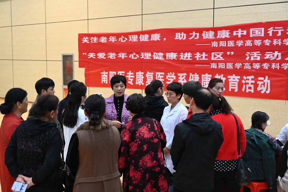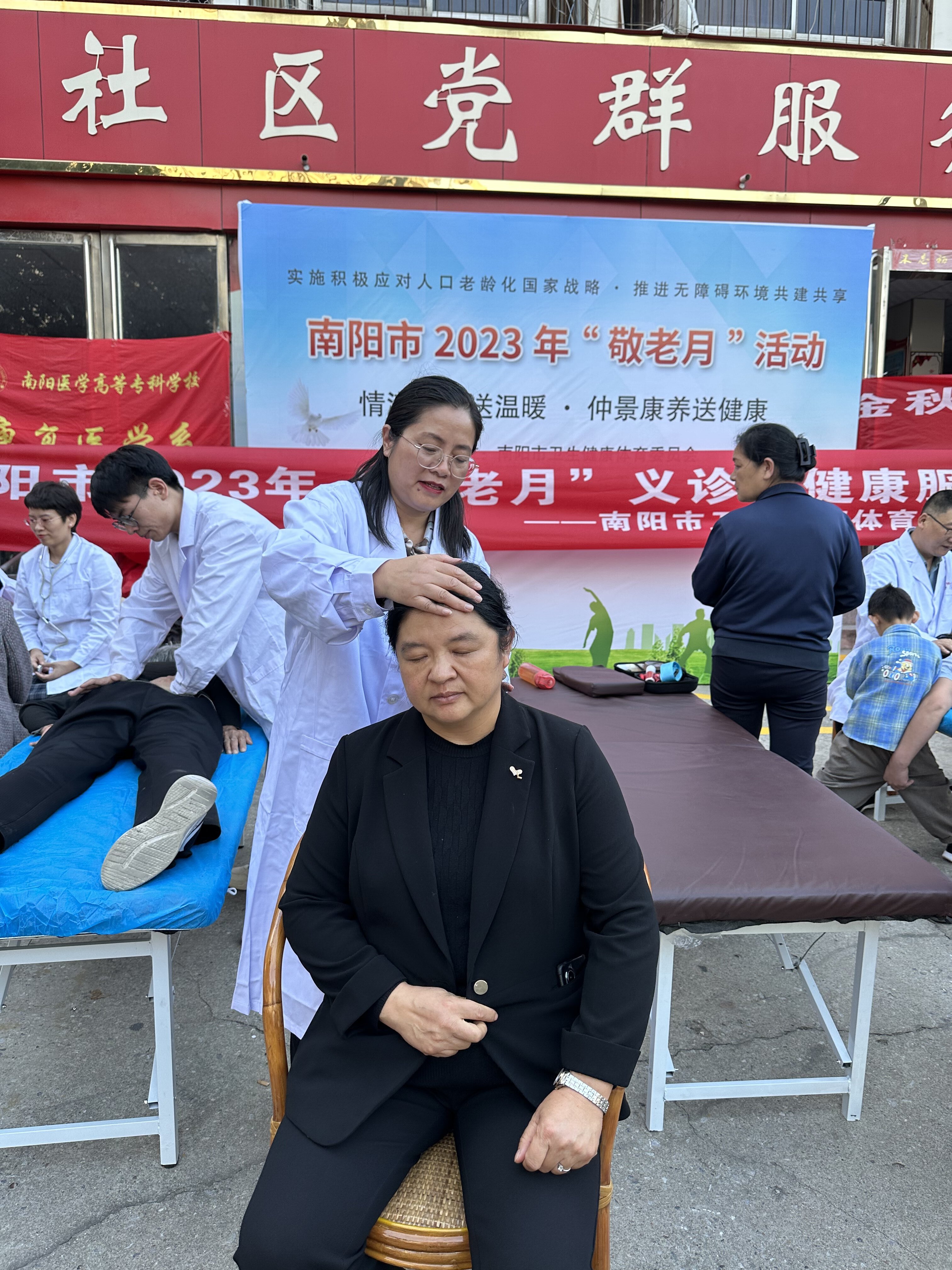 本网讯(康复医学系 陈红)为进一步弘扬中华民族孝亲敬老传统美德,积极响应南阳市卫健体委和南阳市老龄办“敬老月”活动号召,2023年10月28~29日,校长范真带领 “南阳医专康复与心理专家服务团”深入汉画社区、南阳市老年活动中心、姜营社区德合养老中心和特殊困难户家中等地开展“敬老月”系列活动,切实为老年人提供健康服务活动。