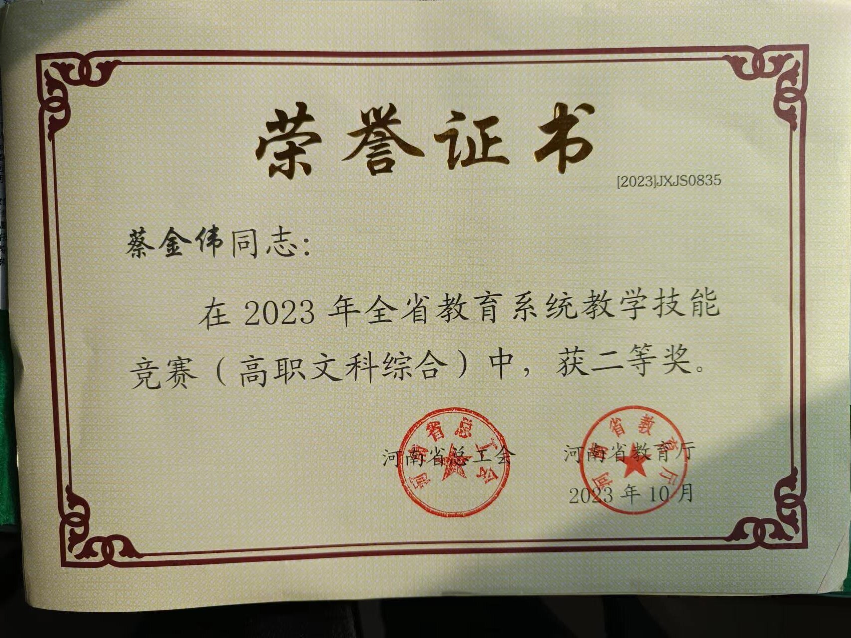 本网讯(文/校工会 程小果)近日,河南省总工会、河南省教育厅公布了《关于2023年河南省教学技能竞赛获奖情况的通报》(豫工文〔2023〕107号),我校康复医学系张迪老师获得高校医科类一等奖,体育教学部李俊杰老师获得高职文科综合类一等奖,两位老师均荣获“河南省优秀教学标兵”称号;卫生管理系蔡金伟老师获得高职文科综合类二等奖,公共教学部余悦老师获得高职文科综合类三等奖。