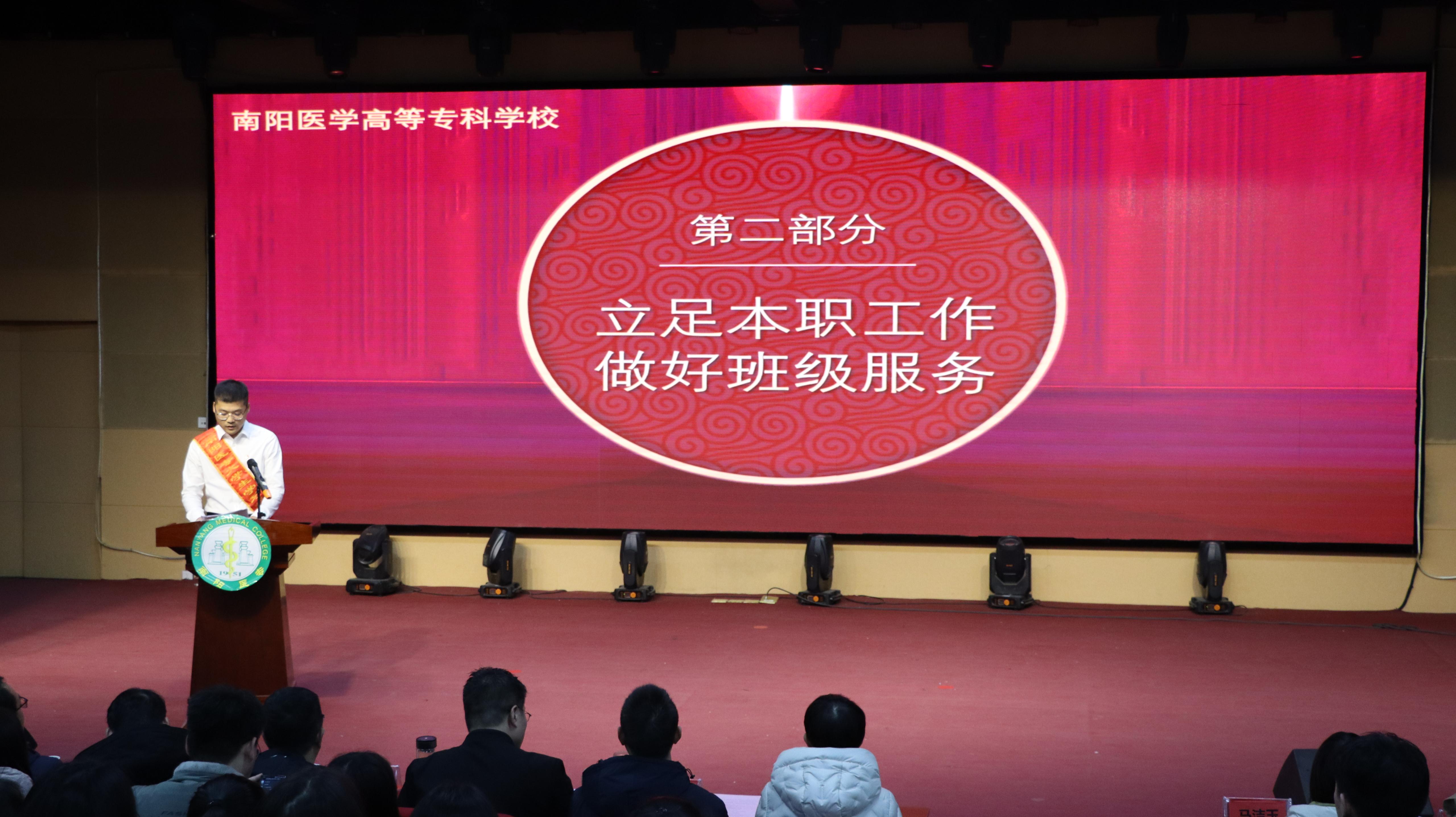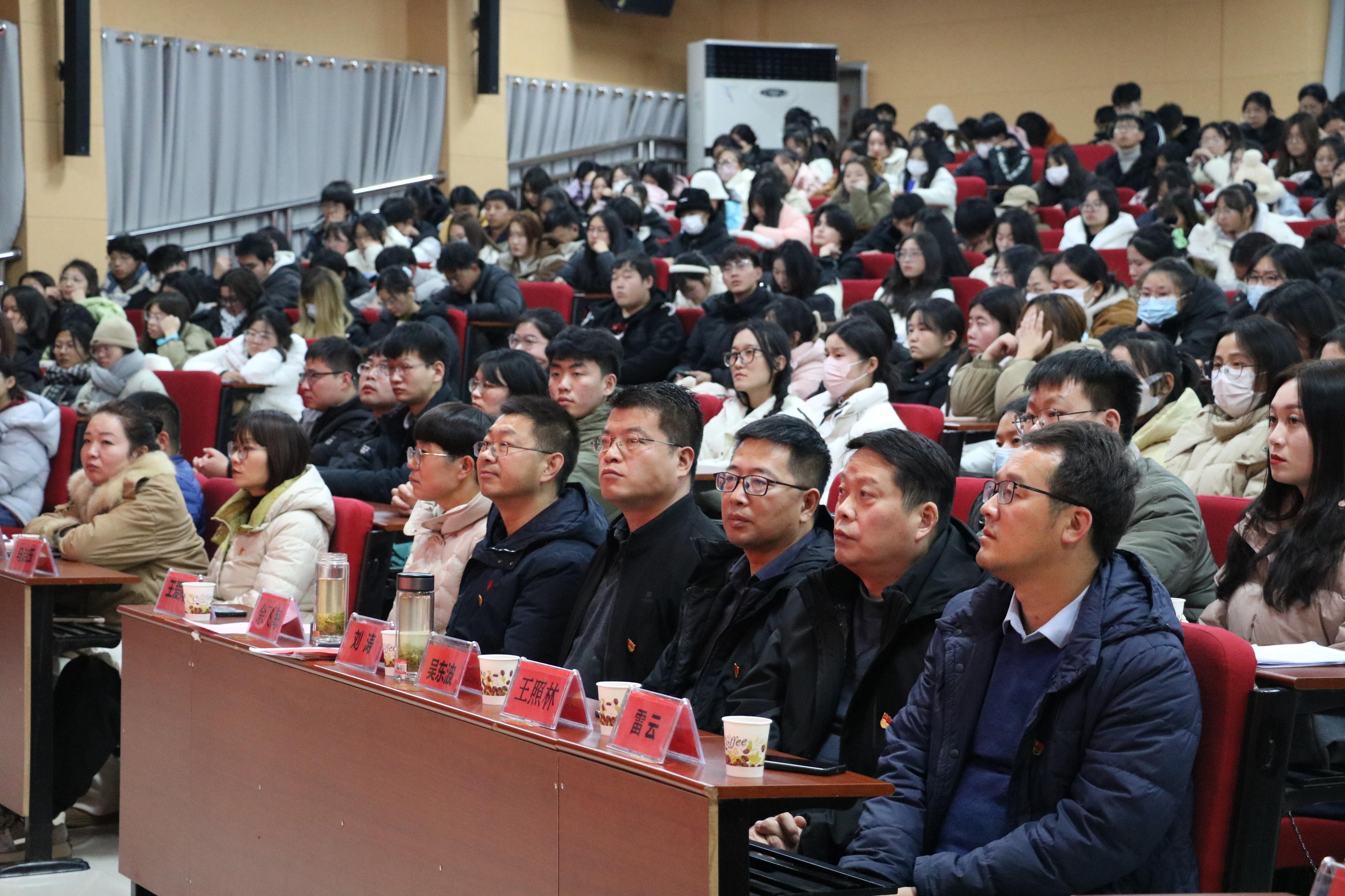 本网讯(文/口腔医学系 雷云)为加强感恩励志教育,激发学生发奋学习的强大动力,12月13日晚,口腔医学系在仲景东区报告厅举办“逐梦筑学,青春榜样”资助育人励志成才报告会。校党委副书记刘涛、学生处副处长吴东波出席会议,口腔医学系行管人员及400余名学生参加会议。