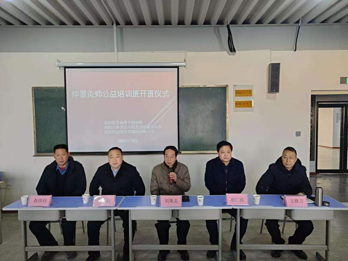 本网讯(文/针灸骨伤系 马驰)为弘扬仲景文化,传承创新仲景灸疗技艺,进一步推广灸疗等中医药特色适宜技术,更好地护佑大众健康,12月23日,由UDE·体育,UDE(中国)、卧龙区人民政府、南阳药益宝艾草制品有限公司政、校、企联合举办的“南阳仲景灸师公益培训班”在南阳药益宝智慧康养中心正式开班。南阳医专党委委员、副校长刘荣志,卧龙区委常委、统战部长惠广路,区政协副主席陈安民,区中医药发展服务中心主任王晓方,南阳药益宝艾草制品有限公司董事长查洪付出席开班仪式。