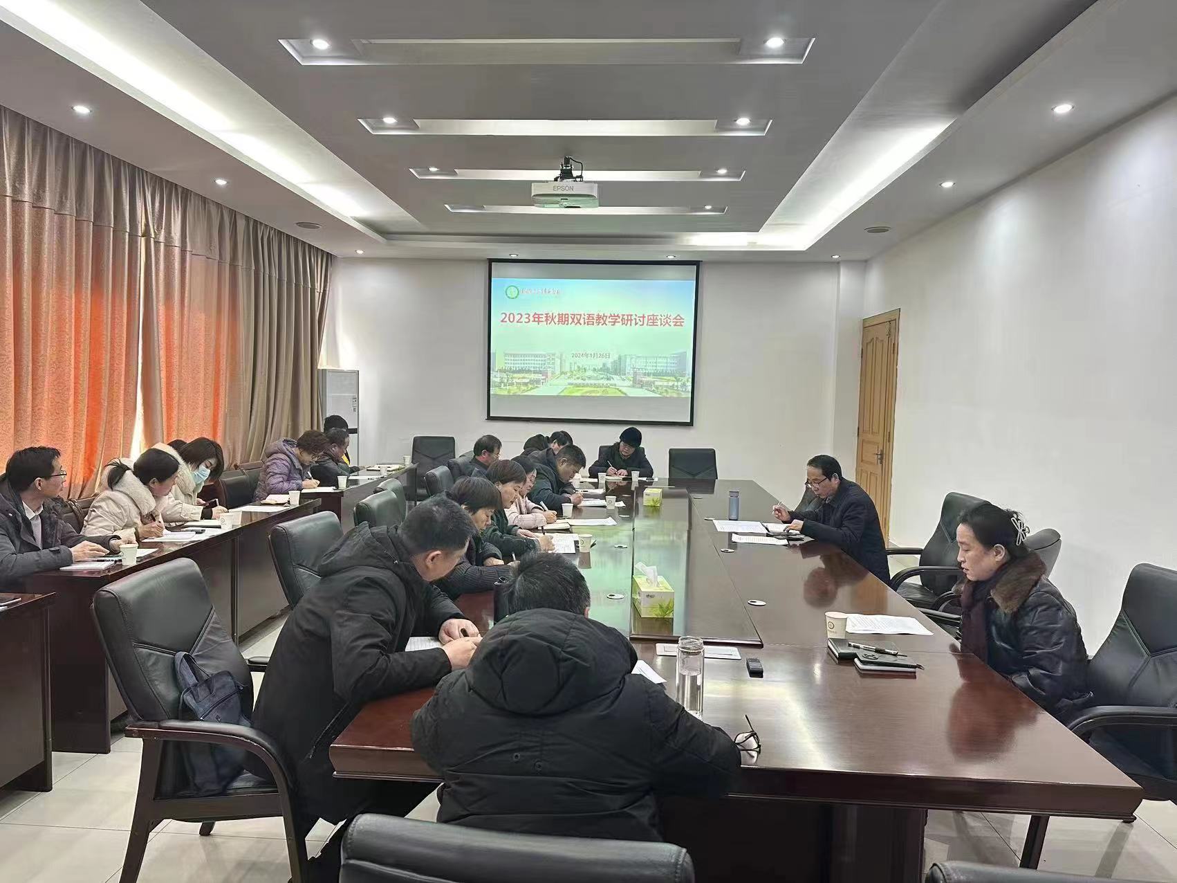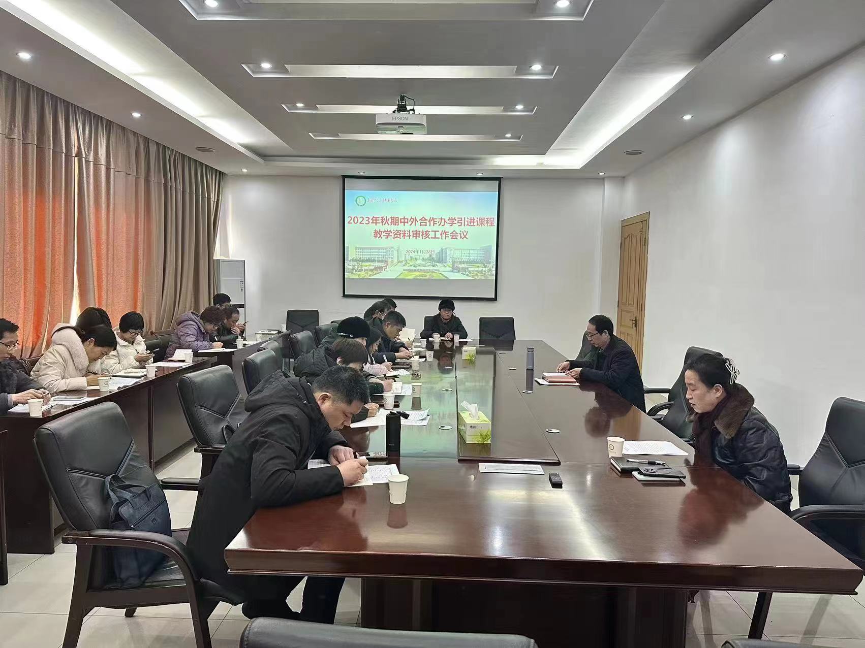 2023年秋期中外合作办学引进课程教学资料审核工作会议完成了对本学期46门引进课程教学资料的审核论证工作,形成了论证意见。双语教学研讨座谈会对本学期46名教师提交的双语材料进行综合评判,确定了评定等级。