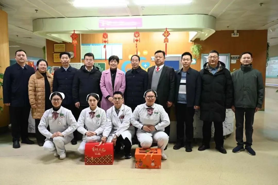 本网讯(文/党政办 刘辉)2月10日,正月初一上午,校长范真、党委副书记刘涛、副校长刘荣志带领党政办、总务处、保卫处、生活服务中心相关负责同志,深入仲景西区、仲景东区、孔明校区和三所附属医院,看望慰问值班值守的教职员工及医务工作者代表,向他们送去新春祝福。