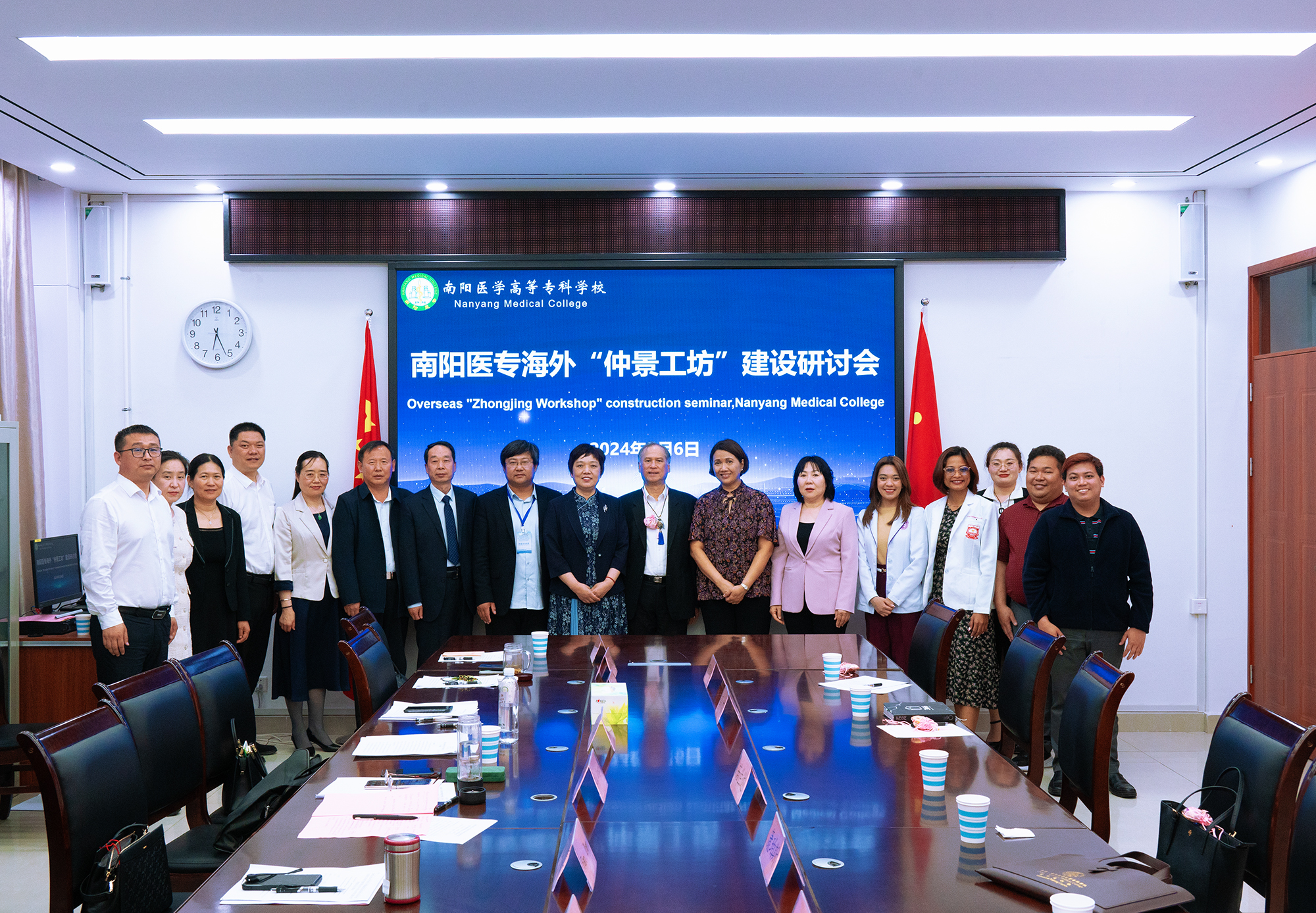 本网讯(文/国际教育学院 程琳)5月6日下午,我校在仲景西区精术楼423会议室成功举办海外“仲景工坊”建设研讨会。校党委副书记、校长范真,党委委员、纪委书记刘金云,党委委员、副校长刘荣志,菲律宾伊密里欧学院校长康珀斯,俄罗斯中医药学会会长任泽斌出席会议。教务处、质量管理办公室、中医系、药学系、针灸骨伤系、对外交流合作处、国际教育学院负责人及菲律宾教师代表参会。会议由刘金云主持。