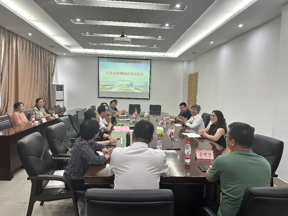 张小勇介绍了法政集团基本情况以及在国际化人才培养、中医药推广方面的做法。与会人员观看了北京法政集团宣传片及2024年法国中医医师高级研修班短片。徐洋具体介绍了集团职业教育的工作情况。刘晓辰分享了法政集团在中医药出海、中医药国际化人才培养、拓宽中医药国际市场等方面的丰富经验。张小勇一行表示,将充分发挥集团优势,与我校在校企合作、人才培养、中医药推广、职业技能培训等领域开展广泛合作,共同推动中医药文化的国际传播与发展。