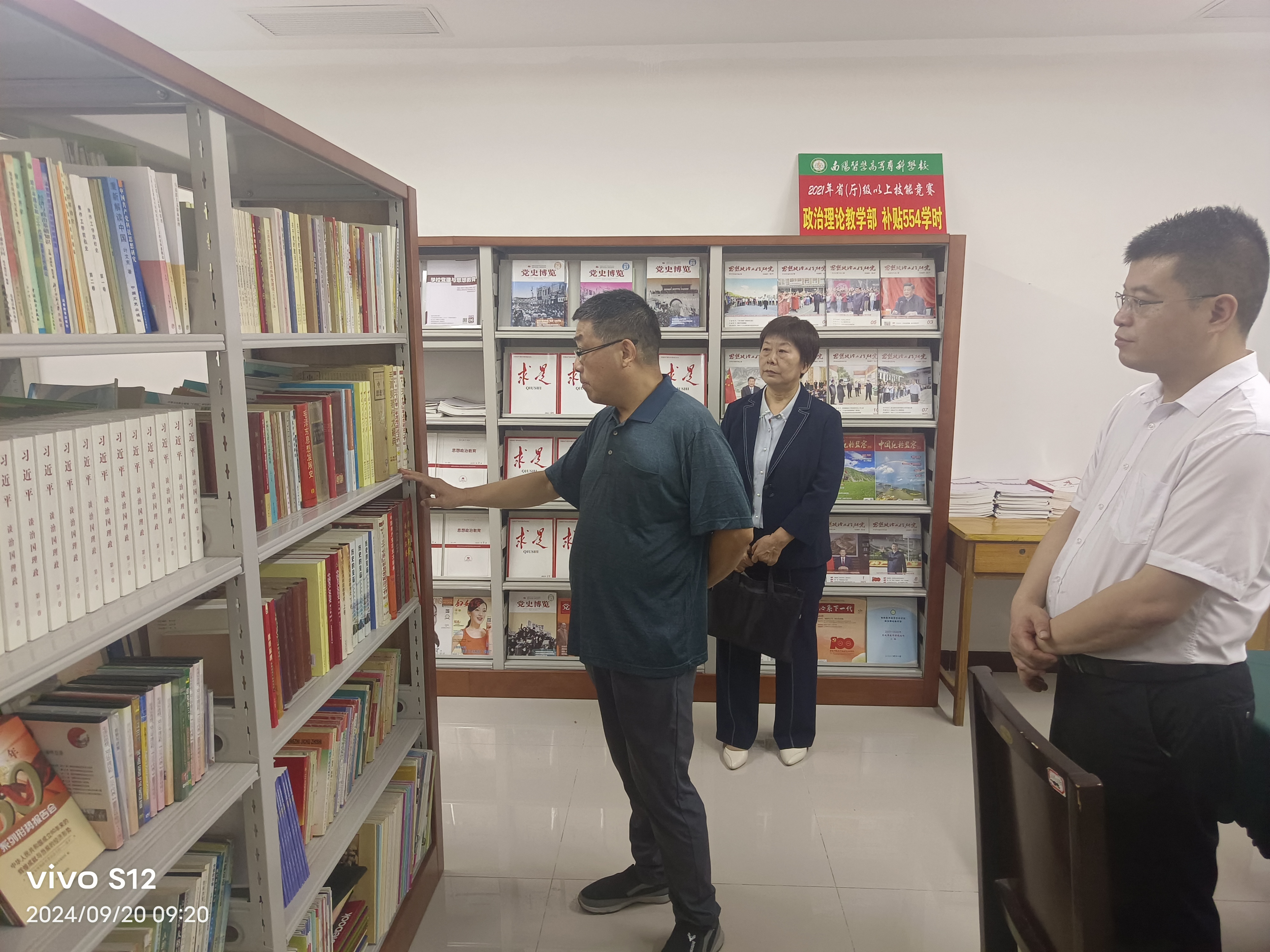 杨宗辉查看了马克思主义学院的办公条件、教研室建设,资料室图书、“南阳医专大学生思政红研学社”工作室等,并就马院党组织建设、师资队伍建设、教师素质提升、集体备课的效果、课堂教学组织等方面与思政课教师进行了深入座谈交流,他充分肯定了我校马院建设取得的成效,并对我校思政课教学改革进行指导:第一,践行初心,落实立德树人根本任务,紧扣人才培养目标,运用多种方式方法讲好思政课,持续提升课堂教学质量。第二,结合四史内容,注重史论教育,运用鲜活生动案例,及时将新时代中国特色社会主义的生动实践转化为课堂教学资源。第三,加强集体备课,增强校际联系交流,充分发挥集体智慧。通过多种途径研训,强化师资队伍建设,提升教师能力素质。第四,紧密结合医学院校特点,充分结合学生专业和学生实际情况,推进思政课教学改革,把医学院校的思政课打造成有特色、有亮点,深受学生喜爱的品牌课程。