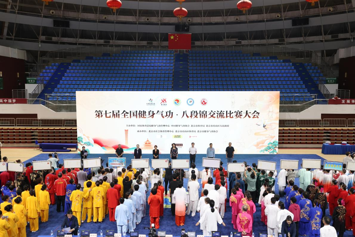 本网讯(文/体育教学部 冯一恒)9月20日上午,2024年第七届全国健身气功·八段锦交流比赛在北京市房山区良乡体育中心开幕。来自全国的76支队伍500余名健身气功爱好者参赛。