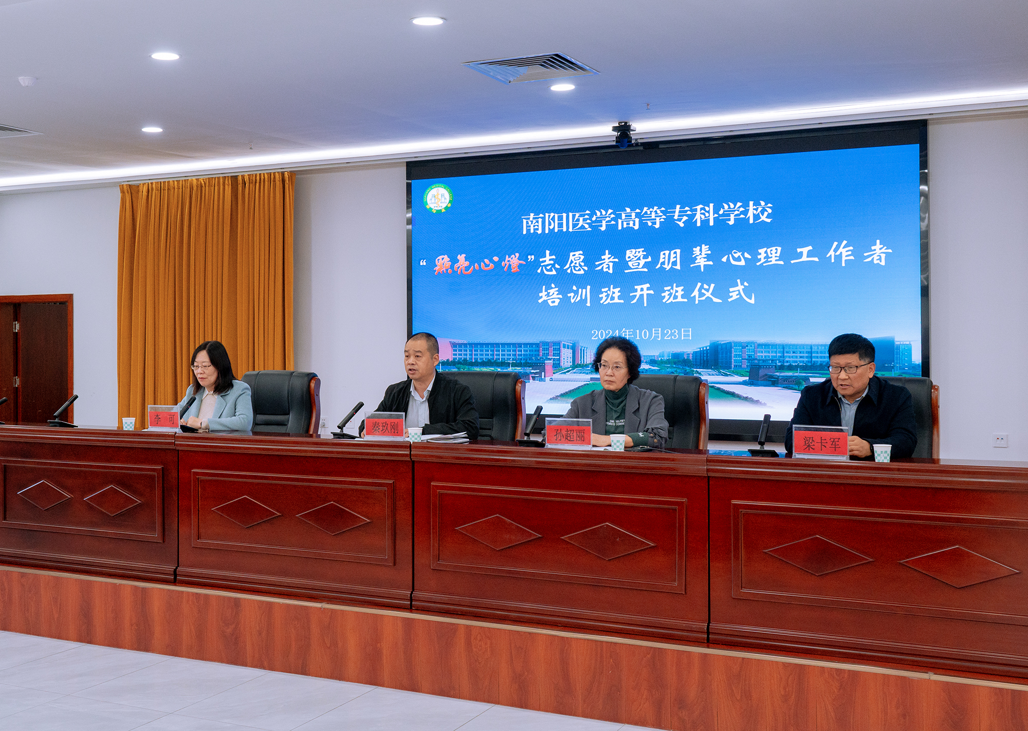 本网讯(文/心理健康关爱与教育中心 李孟辉)为充分发挥朋辈心理力量在心理健康教育四级预警防控工作体系中的积极作用,提升朋辈关怀引领的辐射效能,1023日下午,心理健康关爱与教育中心组织的“点亮心灯志愿者暨朋辈心理工作者培训班开班仪式在仲景东区文化中心举行。校党委委员、副校长秦玖刚出席开班仪式并讲话。各系(部、院)党总支副书记、学工办主任、心理专干以及近300名学生朋辈心理人员在现场参加开班仪式。1600余名通过线上观看了仪式。仪式由心理健康关爱与教育中心副主任李可主持。