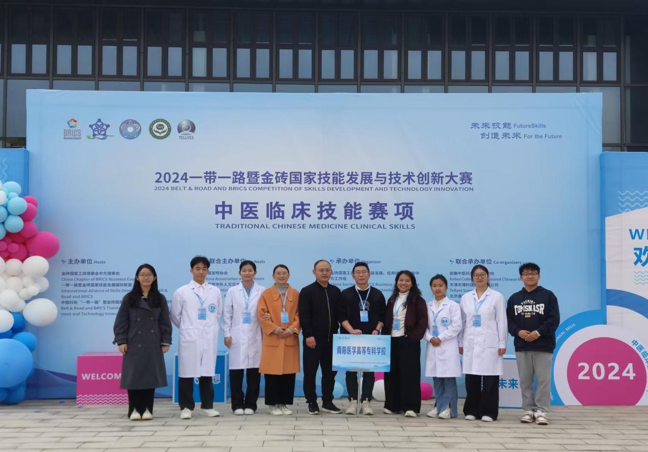 本网讯(文/中医系 刘元)11月8日至10日,2024年“一带一路”暨金砖国家技能发展与技术创新大赛中医临床技能赛项在安徽中医药高等专科学校举办。来自17个省份的37支代表队同台竞技,我校中医系、针灸骨伤系学生许言航、何静雯、王秉正、范佳慧联合组队,以总分371.4分全国第二的成绩脱颖而出,斩获一等奖,并为我校争得“最佳组织奖”荣誉。