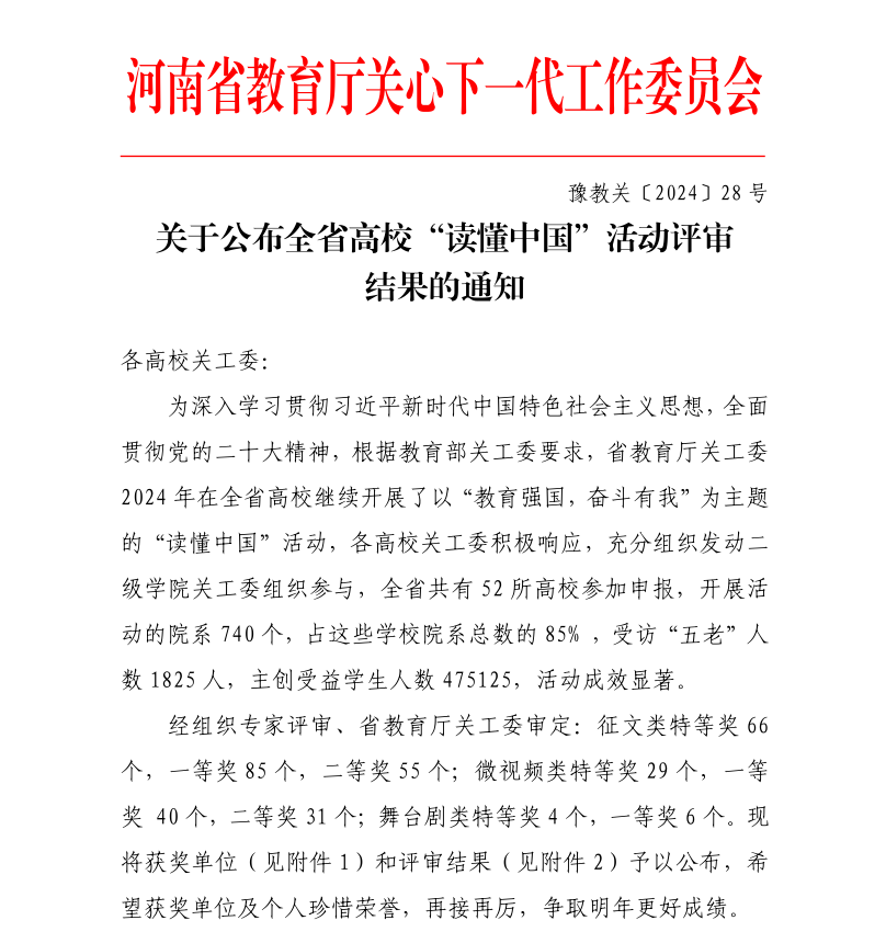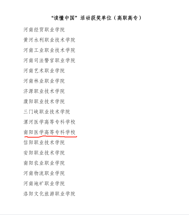 南阳医专关工委在2024年全省高校“读懂中国”中荣获多项奖励