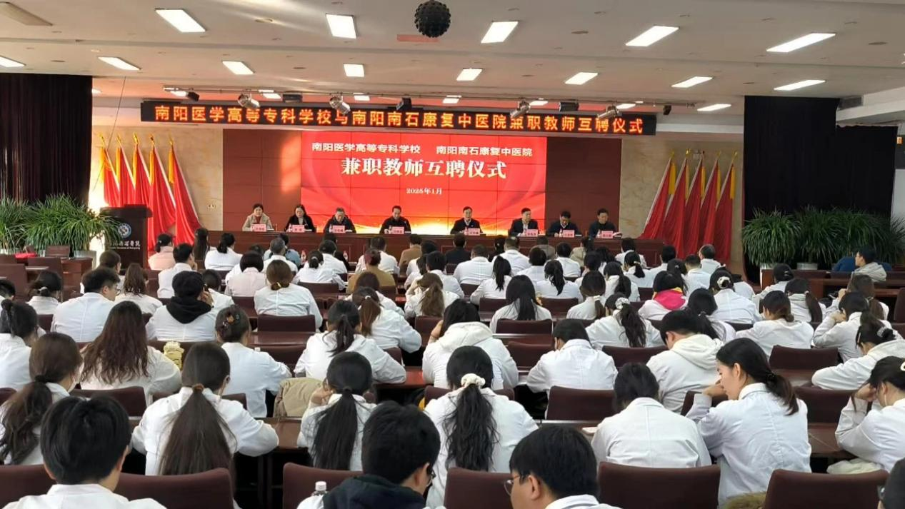 本网讯(文/康复医学系 陈红)1月6日,南阳医专与南石康复中医院教师互聘及学生优秀岗位标兵表彰会在南石医院举行。南阳医专党委委员、副校长刘荣志,南石医院副院长石军峰、彭兆龙、康复医学系领导,南石康复中医院院长王建晖以及学校和医院教师代表出席活动,南阳医专22级康复治疗技术班学生参加了会议。