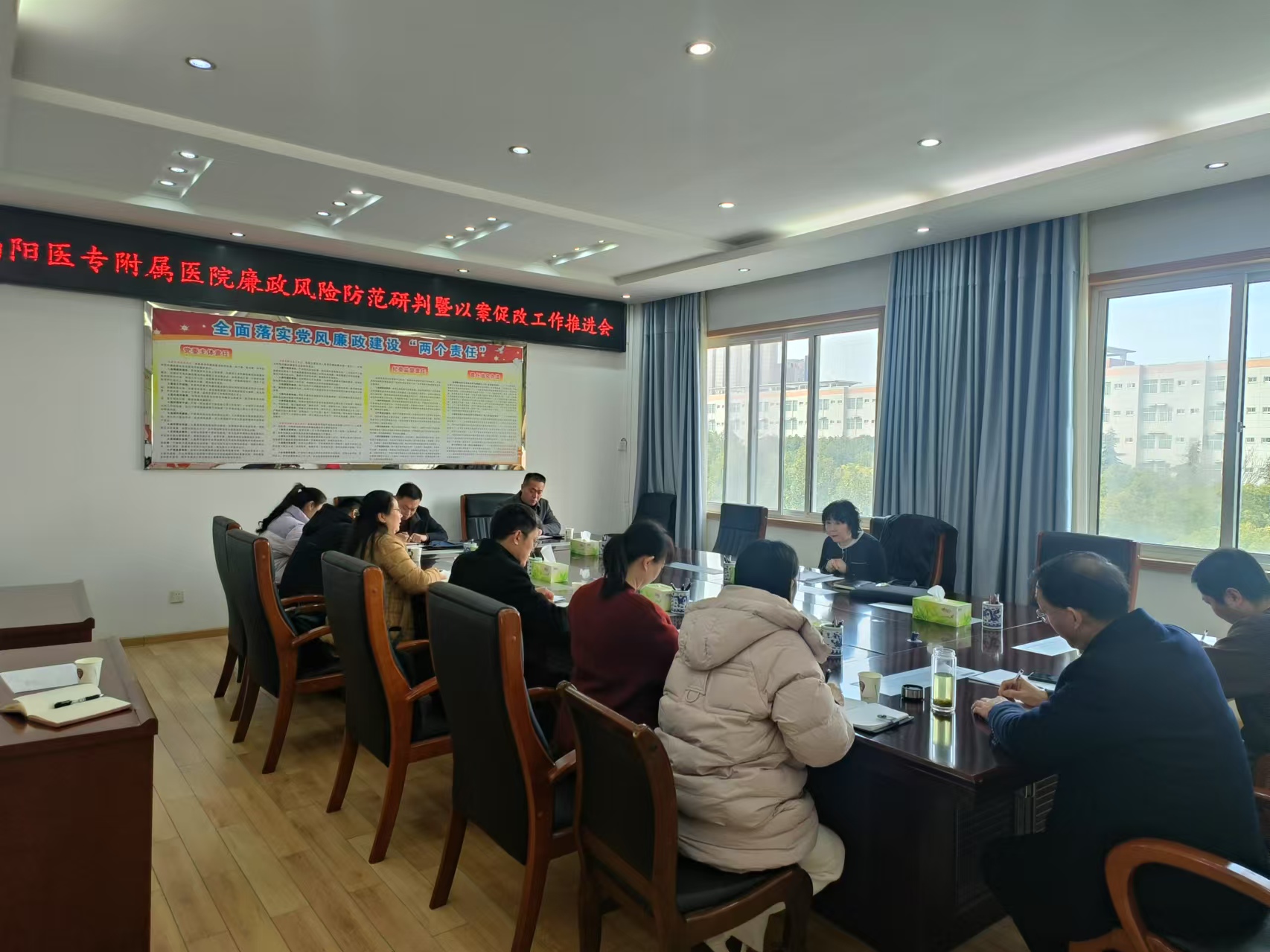 刘金云强调,要坚定不移把反腐败斗争向纵深推进,坚持办案引领,通过风腐同查同治,达到见微知著、系统施治、标本兼治的目的;要进一步加强纪检队伍建设,推动建章立制,明确附属医院纪检工作岗位设置、人选要求、职责任务、保障机制,选优配强纪检干部;要深入推进以案促改、以案促治,对近年来附属医院出现的违法犯罪问题进行归纳总结和系统剖析,深挖案发规律及共性问题,突出重点,分类施治。对附属医院管理体制机制薄弱环节,要查找短板,补强弱项,推动建章立制,强化规范管理,落实主体责任和监督责任,以强有力的监督和警示教育,促进医院医德医风明显改观,确保医专所有附属医院风清气正,健康发展。(编审 李峰松)