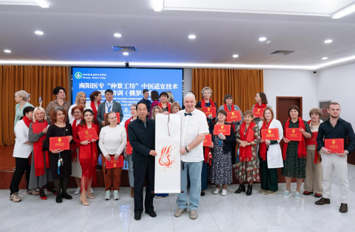本网讯(文/对外合作交流处 夏灵果)3月28日,我校举行2025年第一期“仲景工坊”中医适宜技术国际培训班(俄罗斯班)结业仪式。全英河南同乡联谊会常务副会长王雷,俄罗斯中医药学会会长任泽斌、副会长马克苏特,南阳市委统战部副部长、侨办主任李冠彧,校党委书记柳明伟,校党委委员、副校长刘荣志出席,学校相关部门负责人、全体俄罗斯学员和师生代表参加。校党委委员、纪委书记刘金云主持。