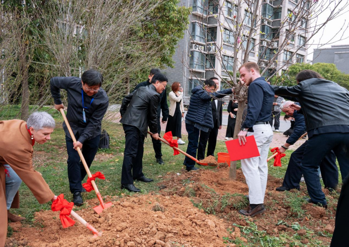仪式结束,俄罗斯学员向我校赠送了玉兰树,与学校领导共同植下“中俄友谊林”。(编审 张博)